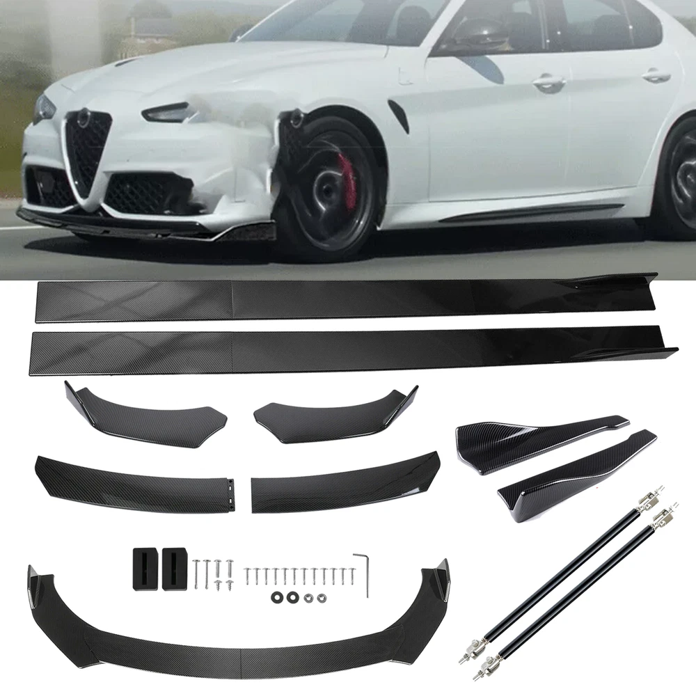 Package 1: Front Lip Chin Bumper(4PCS) Specification: Condition: 100% Brand New Type: Front Lip Chin Bumper Body Kits Material: Made of high quality PP plastic, Durable Color: Carbon Fiber Look Placement on Vehicle: Front ; Lower Features: Give your vehicles sporty appearance Protect Your Bumper From Scratching Strict quality control standards to Build and test. Come With Screws, Pre-drilled holes for quick installation Professional Installation Is Highly Recommended. Package 2: 86.6" Side Skirt Splitter Extension(2PCS) Specification: Condition: 100% Brand New and High Quality Type: Car Body Side Skirts Material: Made of high quality PP plastic, Durable Color:Carbon Fiber Look Surface Finish: Carbon Fiber Look Side Skirt Size: 2.2M/86.6" 86.6inch (Make Sure 2.2m Length is the size you want!!!!!!!!!!!!!!!!!!!!!) Features: 1.Universal modified side skirt for car sedan. 2.While the side skirts don't affect the front ground clearance too much, it enhances the side extension of the in a very pure and exciting way. 3.A Perfect Aftermarket Replacement. 4.Professional Installation Is Highly Recommended. 5.No block to the front ground clearance, effectively enhance the side extension 6.It can give your car a very sporty looking in minutes 7.It is durable and long lasting during any weather situation 8.It can also protect your vehicle from scratches or small bump damages Package 3: 19" Rear Lip(2PCS) Specification: Condition: 100% Brand New and High Quality Type: Car Body Rear Lip Material: Made of high quality PP plastic, Durable Color: Carbon Fiber Look Surface Finish: Carbon Fiber Look Rear Lip Size:48cm/19" Placement on Vehicle: Left, Right Strut Rods: Length: The length can be adjustable from 7.87" to 13" (200-330mm) Material: Stainless Steel Quatity: 2 x Stainless Steel Bumper Lip Splitter Tie Rod Bars. ( Stainless steel has weldability, corrosion resistance and heat resistance.) Position: This exquisite and compact lever is mainly fixed on the body components (front and rear surround, skirt, head and tail lip), and can also be installed in the car center console or interior trim panel Require: Product will require drilling holes into the bumper and/or lip/diffuser to attach safely to the vehicle. Package Includes: 4 pcs /set Front Bumper Lip Chin Body Kits 2 x 86.6" Side Skirts Extension 2 x Rear Lip 1 x Screws kit 2 x Strut Rods Note: Installation instruction is not included, professional installation is recommended. Please allow 1-3CM differs due to manual measurement. Due to the different display and different light, the picture may not reflect the actual color of the item. Thanks for your understanding.