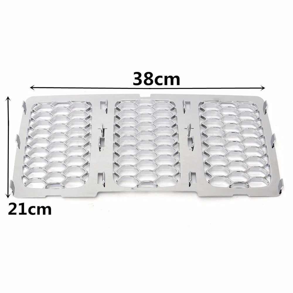 Fitment: For Jeep Grand Cherokee 2014 2015 2016 Product Features: . Perfect Fit Your Jeep Grand Cherokee: Honeycomb matte mesh front grill grille inserts covers are perfect fit your jeep grand cherokee 2014 2015 2016 . Made of High ABS Quanlity: Made of durable ABS plastic with matte black finish, Never Rust, Corrode or Peel. It is greatly protects the engine from dust, grit and stones ect. . Easy to Install with Own Buckle: These grab checokee grill Inserts covers with their own buckles, staggered design of buckles which more stable without falling down even when your jeep bounces over any kind of rough ground. . Unique Designed of the Tilted Honeycomb: Technology designed of the tilted holes, it is good for heat dissipation of the engine. Giving your Grand Cherokee a stylish and upscale look with honeycomb grill inserts. Please verify that this grille fits your vehicle before you purchase Aftermarket grille insert kit It is easy to install,directly replace the old grille and not need to require drilling. It is crafted from chrome ABS plastic and will not rust, corrode or peel. This grille insert protects the engine from off-road elements like road debris such as papers, plastic, broken glasses, stones, etc., from getting through the engine compartment. Package Details: 3pcs of Honeycomb Front Grille Grill Insert Cover . Satisfaction Guarantee: Provide the best products and services is our aim. if you're not 100% satisfied with the Grand Cherokee Grill Cover, simply return it for a full refund in 30 days, no questions asked money back guarantee with 1 year’s warranty.