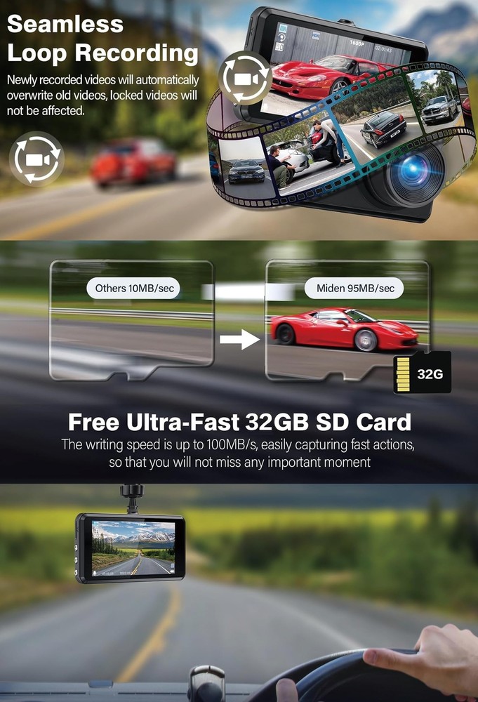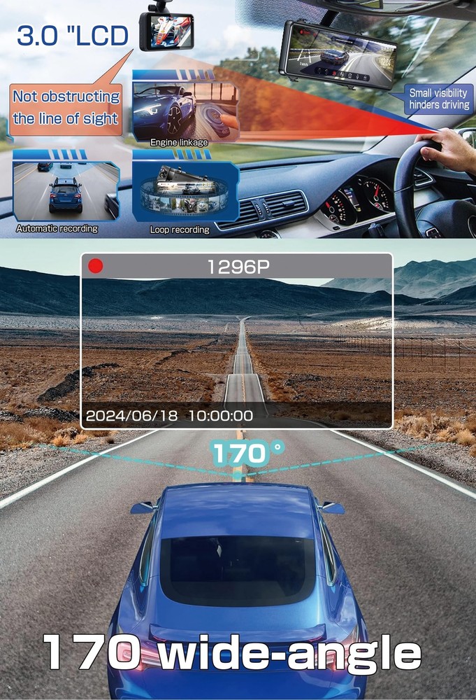 Dash Cam Front and Rear, Front and Rear car Cameras, 1296P Full HD car Camera, 170 Wide-Angle, with a 3.0 "LCD Display Screen, Infrared Night Vision, Loop Recording, 32GB SD Card, IPS Screen,WDR Product Details Brand: yleegs Orientation: Front and Rear Vehicle Service Type: Car Connectivity Technology: USB Special Feature: Built-In Speaker, Built-In Microphone Video Capture Resolution: 1296p Included Components: Car Mount, Car Charger, User Manual, Warranty Card Mounting Type: Windshield Mount Field Of View: 1.7E+2 Degrees Control Method: Touch Product Dimensions: 1.38 x 3.53 x 3.27 inches Item Weight: 12 ounces Batteries: 1 Lithium Polymer batteries required. (included) Connectivity technologies: USB Special features: Built-In Speaker, Built-In Microphone Other display features: Wireless Whats in the box: Car Mount, Car Charger, User Manual, Warranty Card Manufacturer: jjxldz Country of Origin: China Date First Available: June 13, 2024 Front and rear of dash camOur driving recorder includes two cameras: a 1296P FHD wide-angle front camera (170 ) and a small waterproof 720P rear camera (140 ). Observe the situation behind the car, or install a rear camera inside the car to record passengers (very suitable for carpooling drivers). No blind spots, dual protection! Our dash cam can also record sound. 1296P Full HD Resolution and 3-inch LCD DisplayOur car mounted dash cam features a 1296P FHD lens, full HD resolution, and super night vision, with a 30fps and 170 wide-angle lens, reducing blind spots and capturing high-quality shots. Even at high speeds, a 3-inch LCD screen allows you to monitor and replay critical moments. Comes with MicroSD card&automatic recording and loop recording Using the included MicroSD card, the dash cam will automatically start/stop recording when the car is turned on/off. The loop recording function automatically overwrites previously unlocked videos, freeing up more space for new videos. A 32GB MicroSD card can often be recorded for a week. If the video is not needed after the card is full, simply manually delete or format it to re record. F1.8 aperture and HDR, WDR technology Nighttime photography is brighter, and details such as license plates are clearly visible. With this technology, nighttime photography becomes brighter. Any problem of image exposure and insufficient lighting can be solved The most cost-effective driving recorder This dash cam has all the default settings, which means even beginners can easily set and use it from day one. It is the most cost-effective driving recorder, very suitable for anyone who wants to record and store traffic accidents. With its fashionable design and high-end packaging, it is an excellent gift for festivals. If you have any questions, please feel free to contact us at any time. Easy to install and warranty The driving recorder is connected to the included windshield suction bracket and inserted into the cigarette lighter, which can be used. The user-friendly 【Front and rear of dash cam】Our driving recorder includes two cameras: a 1296P FHD wide-angle front camera (170 °) and a small waterproof 720P rear camera (140 °). Observe the situation behind the car, or install a rear camera inside the car to record passengers (very suitable for carpooling drivers). No blind spots, dual protection! Our dash cam can also record sound. 【1296P Full HD Resolution and 3-inch LCD Display】Our car mounted dash cam features a 1296P FHD lens, full HD resolution, and super night vision, with a 30fps and 170 ° wide-angle lens, reducing blind spots and capturing high-quality shots. Even at high speeds, a 3-inch LCD screen allows you to monitor and replay critical moments. 【Comes with MicroSD card&automatic recording and loop recording 】Using the included MicroSD card, the dash cam will automatically start/stop recording when the car is turned on/off. The loop recording function automatically overwrites previously unlocked videos, freeing up more space for new videos. A 32GB MicroSD card can often be recorded for a week. If the video is not needed after the card is full, simply manually delete or format it to re record. 【F1.8 aperture and HDR, WDR technology 】 Nighttime photography is brighter, and details such as license plates are clearly visible. With this technology, nighttime photography becomes brighter. Any problem of image exposure and insufficient lighting can be solved 【The most cost-effective driving recorder 】This dash cam has all the default settings, which means even beginners can easily set and use it from day one. It is the most cost- effective driving recorder, very suitable for anyone who wants to record and store traffic accidents. With its fashionable design and high-end packaging, it is an excellent gift for festivals. If you have any questions, please feel free to contact us at any time. 【Easy to install and warranty 】The driving recorder is connected to the included windshield suction bracket and inserted into the cigarette lighter, which can be used. The user-friendly