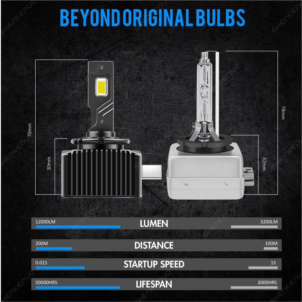 Car Light Bulb GJ Series Bulb HK Series Bulb BY Series Bulb C6 Series Bulb C9 Series Bulb S1 Series Bulb S2 Series Bulb F2 Series Bulb X7 4Side Series Bulb K9 4Side Series Bulb X15 4Side Series Bulb HID Series Bulb Other Type Bulb(Fog,DRL...etc) V5 4Side Series Bulb DF Series Bulb 6 Side Series Bulb Z4 Series Bulb LX Series Bulb DSX Series Bulb K9L 4Side Series Bulb LED Light Strip Work Light Bar Protection Sticker Car Interior/Exterior Trim Tool Promotion Other Item Description 。 *PLEASE NOTE SOME VEHICLES MAY NOT BE LISTED IN THE COMPATIBILITY CHART, IF UNSURE MESSAGE US FOR COMPATIBILITY OR COMPARE TO YOUR EXISTING BULB. *Replace for factory HID / xenon bulbs only. Do not fit for halogen bulbs or LED bulbs LED Headlight Kit D1S Replace Factory HID Headlight High&Low Beam Bulb / Low Beam Bulb 70W/set 12000LM/set 6000K White 1x Pair(2pcs) (This kit is for vehicles with factory HID bulbs, it will not work with vehicles with factory Halogen) 1 .HIGH BRIGHTNESS : Lastest CSP TX3570 led chips with 6000K cool white light ;400% brighter than your stock Halogen headlights. technology to ensure a perfect beam pattern without any dark spots or foggy light. 2. POWERFUL HEAT DISSIPATION : Aluminum heat sink and 12,000 RPM Turbo Cooling fan with high efficiency colling to ensures your LED Headlight bulbs Over 50,000 hrs of brilliant continuous light. Control driver has intelligent control chip,can monitor fan speed for optimal heat protection and performance and provide wide voltage,constant current IC. 3. EASY INSTALLATION : Can be installed in 10 mins. No relay. No capacitors. No extra wiring. Plug and play. 4. IP68 WATERPROOF : Water-proof and heat-protected with integrated cooling chip and fan for heat dissipation. Rainproof driver, housing, and fan works even in extreme situations. Automatic short-circuit protection. Attention: If you are unsure your bulb type, please do remember send message to tell us your car make, model, year and other information which is helpful to check bulb type. 。 Shipping Policy Payment Method Returns Policy Shipping Policy 1) Item Located in US , We will ship all orders asap from our USA warehouse, All shipment will ship by UPS or USPS.Not include small package which less than $5. 2) Item Located in China ,We will ship from China Warehouse.( No service on Weekend and public holidays). 3) We will ship out all orders as soon as possible after payment verified, please allow up to 1-4 business days for delivery. 4) Delivery time within the U.S. is usually just 3 to 6 business days, however in rare cases it could take 6 to 7 business days. Why Choose the US Stock? 1. Us Local Shipping, No Extra Customs Cost to the US. 2. Fast Delivery: 3-6 Working days Delivery. 3. Best After-Sales Service!!! Payment Method We accept PayPal only. Payment must be made within 4 days of auction closing. (Non-payment may result in a UPI