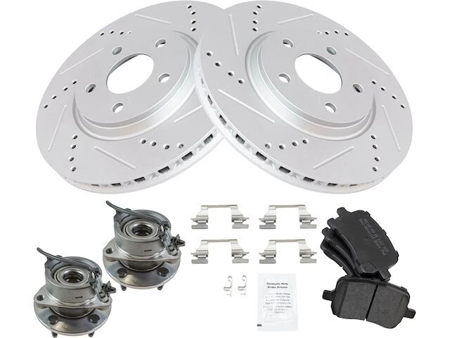 Front TRQ Brake Pad and Rotor and Wheel Hub Kit fits Pontiac G5 2007 79RTZH Front TRQ Brake Pad and Rotor and Wheel Hub Kit fits Pontiac G5 2007 79RTZH Position: Front Brand: TRQ Brake Pad and Rotor and Wheel Hub Kit Condition: New Product Description Notes: Semi-Metallic Performance Brake Pad & Rotor Kit -- with 5 Lug Wheels; RPO Code JL9 (Power 4 Wheel ABS Disc Brakes) Features: Semi-Metallic Improved Stopping Power: Cross-drilled slotted to reduce brake fade Longer Lasting: True non-interference vane design for optimized cooling Positive Molded: Less dust resulting in cleaner wheels Multi-Layer Shim: Reduced noise and vibration Direct Replacement: No modifications necessary Product Specifications Coating: Premium G-Coated Grade Type: Performance Type: Performance Surface Type: Slotted X Drilled Package Contents: (2) Front Wheel Bearing & Hub Assemblies; (1) Front Semi-Metallic Brake Pad Set with Contact Point Grease & Hardware; (2) Front G-Coated Performance Brake Rotors Detailed Applications Years Vehicle 2007 Pontiac G5 Warranty Coverage Policy 12 Month Warranty 30 Day Return Policy Return shipping paid by: Buyer Item must be returned within: 30 Days Refund will be given as: Money Back DO NOT SEND RETURNS BACK WITHOUT A VALID RMA NUMBER If you have an issue after receiving your part, please email us directly through eBay