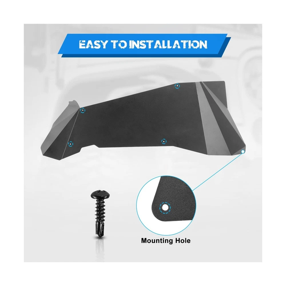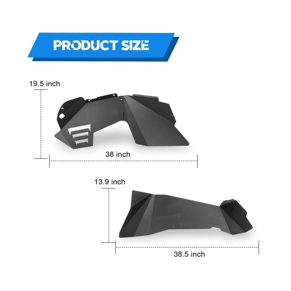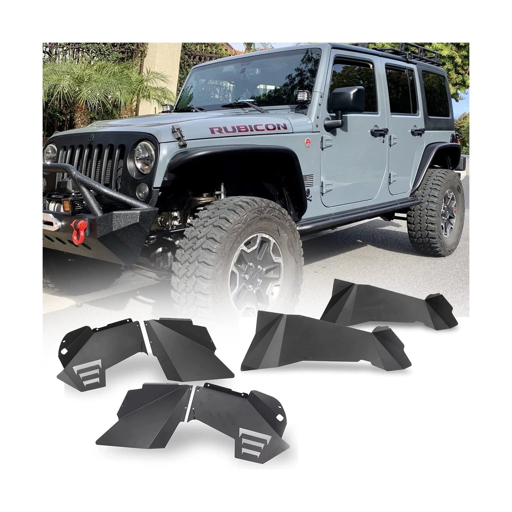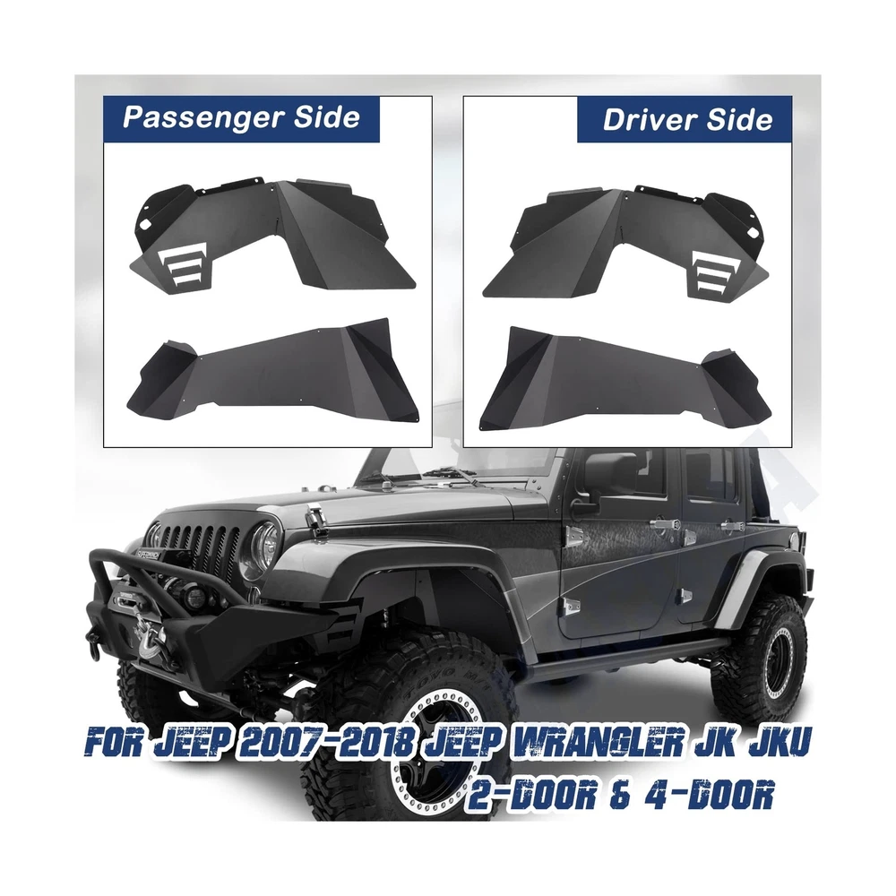 Front and Rear Inner Fender Liners for Jeep 2007-2018 Wrangler JK & JKU Unlimited 4WD 2WD, Hawkley Alloy Steel Fender Flares Inner Liners Wheel Well For 2007-2017 2018 Wrangler Rubicon Sahara Description Features: FITMENT - JK inner fender liners are specifically built for Jeep 2007 2008 2009 2010 2011 2012 2013 2014 2015 2016 2017 2018 Wrangler JK/JKU Unlimited, including 2 Doors / 4 Doors models. PROTECT ENGINE AND IMPROVE AIRFLOW -- Protect your Wrangler JK's with the off-road Inner fenders for your wheels. With vents to help reduce under-hood temperature are constructed to reseal your engine and provide the airflow you need to realize your JK's optimal power. DECORATION AND PROTECTION - Full coverage Compatible with total protection, help protect vehicle from rocks and debris inside the wheel well when driving on or off road. Keeping the engine bay clean and safe, makes your car always stay in high performance status, prevent the rust of the paint surface caused by the splash of sediment, mud and debris INSTALLATION - This steel fender flares inner liners each side inner liner are 2 parts put together as a complete construction. Easy to install.No drilling,just bolt-on the inner fender with original screw and factory hole.Easy access for your wranglers shocks, Easy to inspect and adjust. PERFORMANCE - The steel material make the jk fender flares inner liner have a good property,Powder coated make it will be a long time waterproof.Two stage finish using E-Coat pre-coating and high-grade textured black powder coating for long lasting corrosion resistance. Product Details: Brand: Hawkley Color: Black Exterior Finish: Black Powder Coated Steel Material: Alloy Steel Item Weight: 11.93 Kilograms Brand: ‎Hawkley Color: ‎Black Exterior Finish: ‎Black Powder Coated Steel Material: ‎Alloy Steel Item Weight: ‎11.93 Kilograms Style: ‎Inner Fender Liners Auto Part Position: ‎Front Vehicle Service Type: ‎Car Fit Type: ‎Vehicle Specific Fit Manufacturer: ‎Hawkley UPC: ‎731694539827 Model: ‎jk wrangler inner fender liners for jeep Item Weight: ‎26.2 pounds Package Dimensions: ‎40 x 20 x 9.75 inches Country of Origin: ‎China Item model number: ‎JK01 Manufacturer Part Number: ‎JK01 Special Features: ‎Stylish Vent Design Date First Available: June 10, 2022 Delivery We Do Not Ship Outside of the Continental US. Return Policy All items qualify for returns within 30 days of receipt. Buyer is responsible for return shipping on any item that is not damaged. Feedback We take our reputation seriously, we buy and sell online, so we understand the value of trust. If you are unsatisfied with your order, please contact us and we will work with you to resolve it to your satisfaction.