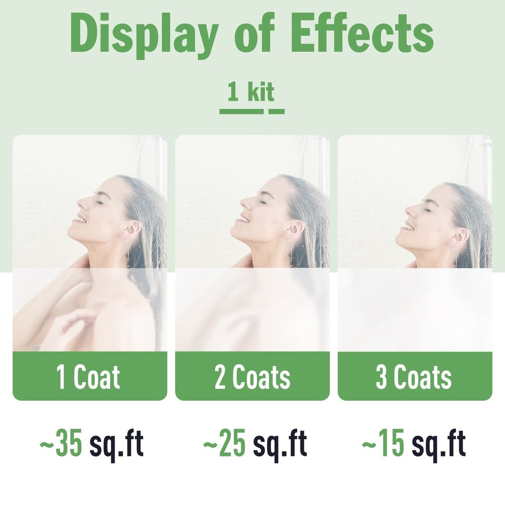 【Privacy and Light Balance】Maintains discretion in private spaces while letting in comfortable natural light without the glare. The translucent window privacy paint strikes the perfect balance between privacy and natural lighting 【High Coverage and Quality】A single 16 oz bottle of the frosted paint covers 25 sq ft with two coats which are waterproof and colorfast. Wait 1.5 hours after the first coat before applying the second and no water contact for 24 hours post-application 【Complete Kit Included】Features everything you need—frosted glass paint, masking supplies, roller, sandpaper, gloves—making it perfect for beginners and pros alike. This comprehensive kit helps you achieve professional-looking results easily 【Low Odor and VOCs】frosted window paint is a water-based formula with low odor and VOCs. This green approach means you can enjoy a fresh, frosted look without the harsh things typically associated with traditional paints 【Wide Application】The frosted glass paint is ideal for enhancing privacy and aesthetics in various indoor settings, such as bathrooms, kitchens, bedrooms, and office windows, suitable for any glass surface NOTE: There's an electronic version of the User Guide (PDF) on this product page. You can find it under "Product Guides and Documents" NOTE: For food safety, this window privacy paint is not suitable for use on any food storage cups, plates, or similar items.