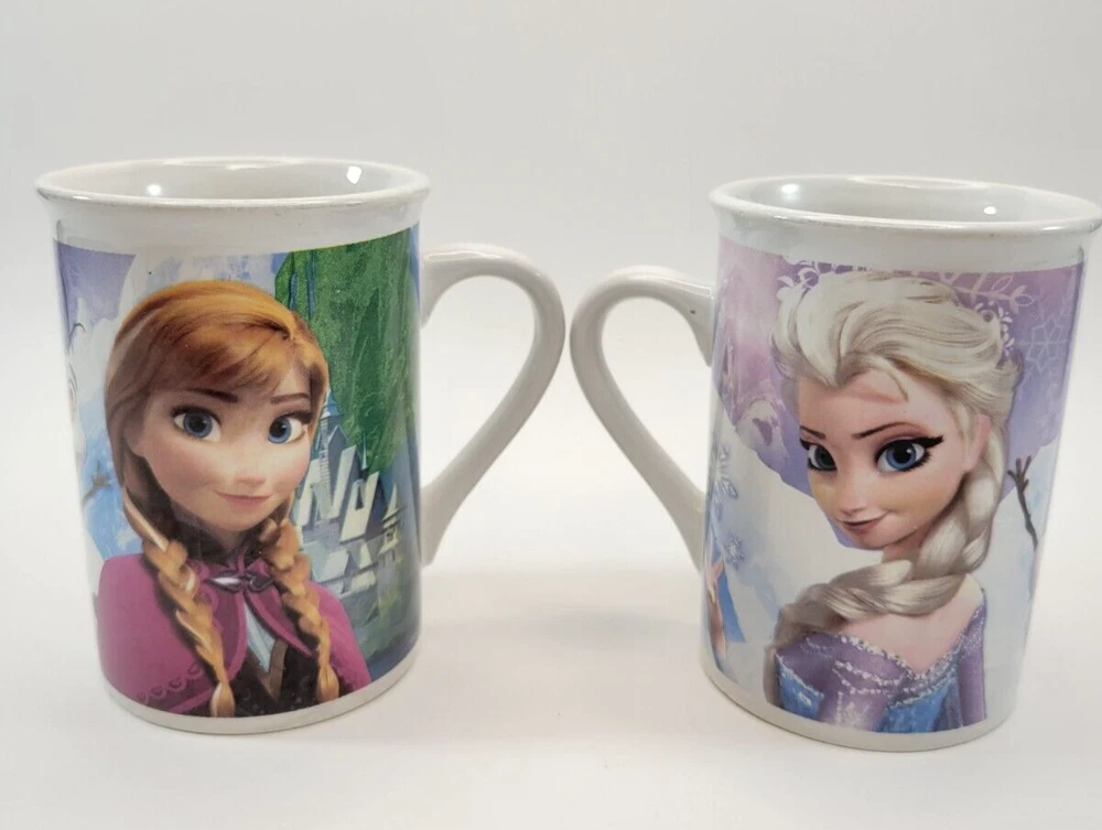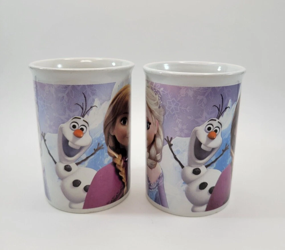 These Coffee Cups from the Frozen Movies features Sisters Anna and Elsa and the Snowman Olaf. They are beautiful cups for any season but especially the Holiday season. Set of 2 Each cup is approximately 4 inches Tall, 3 inches across the Top and 2 1/2 inches across the bottom. There are no chips. Each item is carefully packaged to prevent any damage and is shipped immediately with tracking.