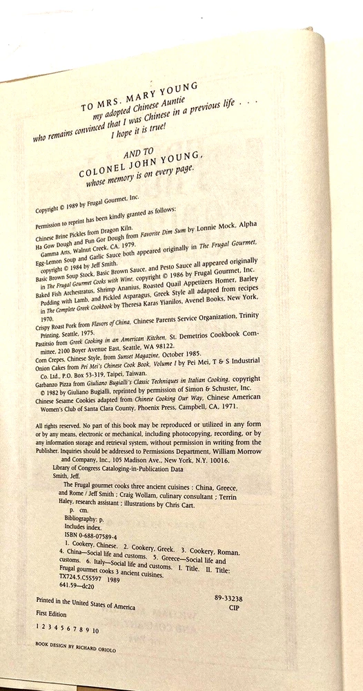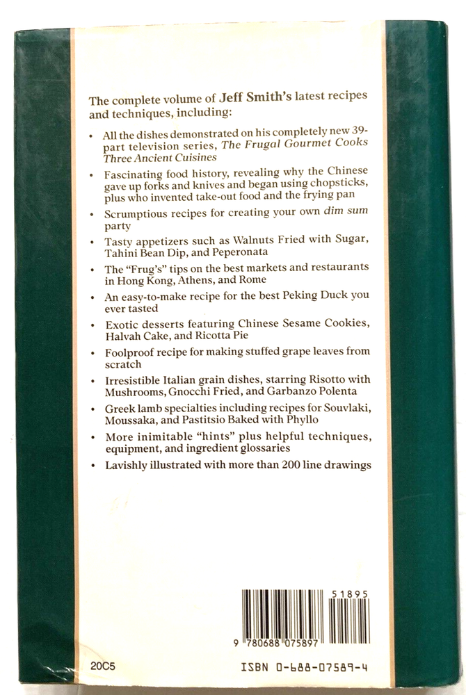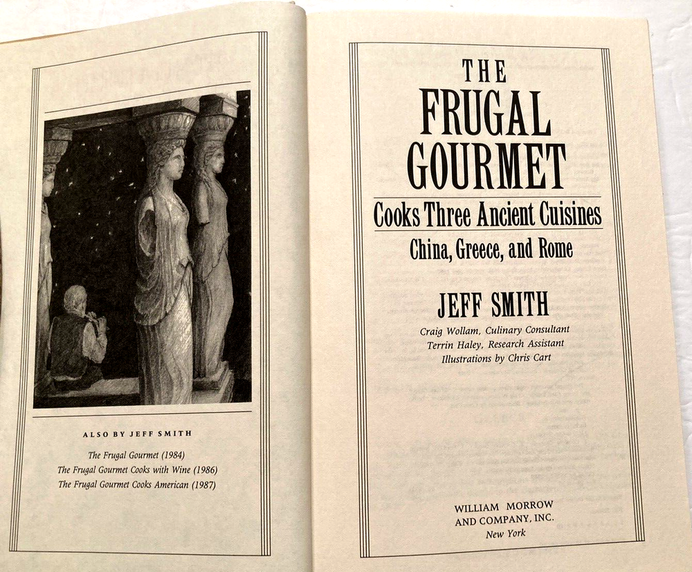 BRAND NEW FIRST EDITION SIGNED THE FRUGAL GOURMET COOKS THREE ANCIENT CUISINES CHINA GREECE ROME 1989 Hardcover & Dust Jacket Cookbook Signed by both Jeff Smith and Craig Wollam $70 T hank you for looking! AH