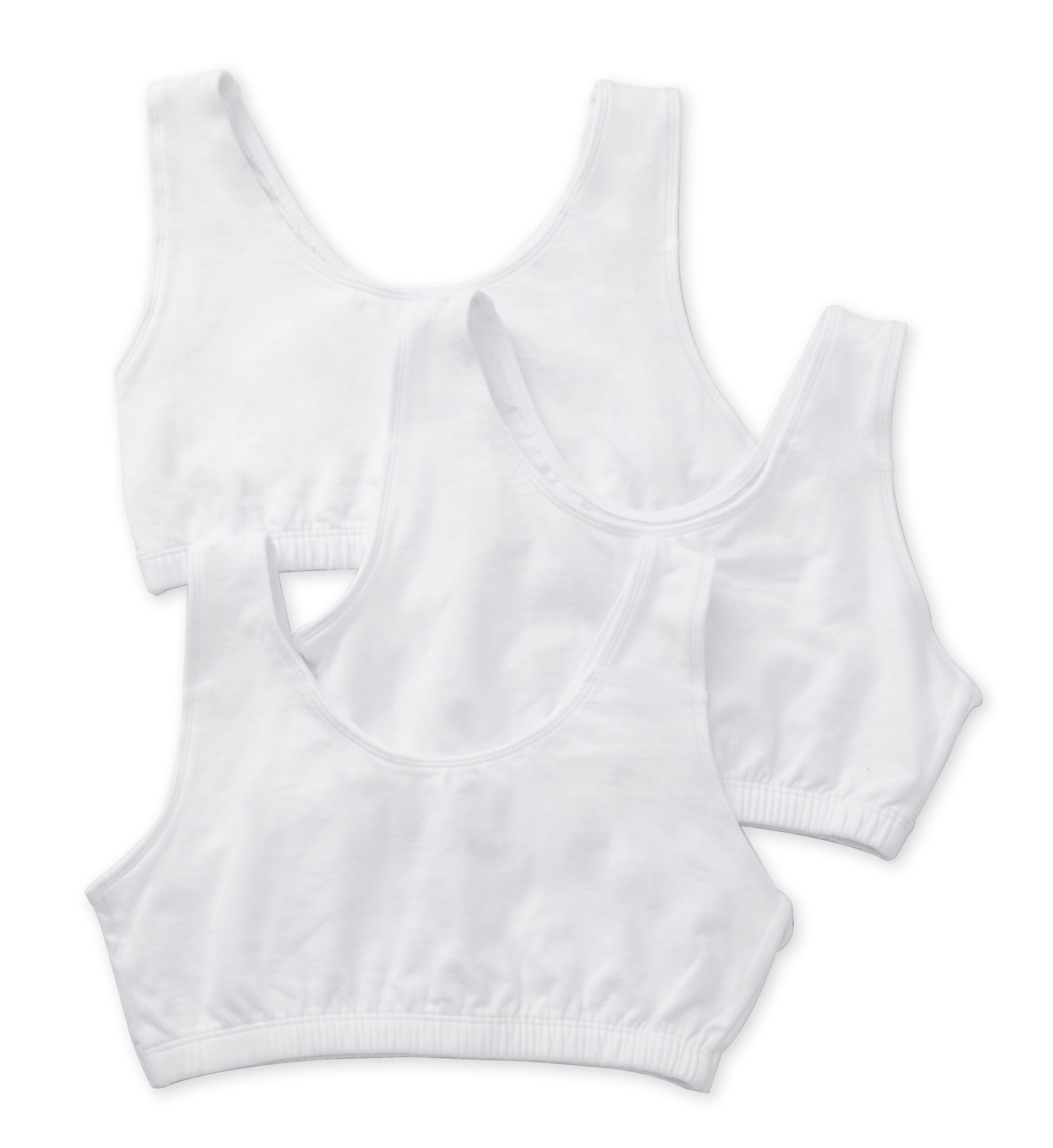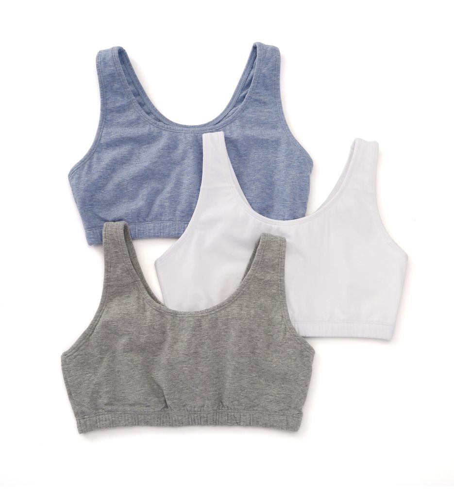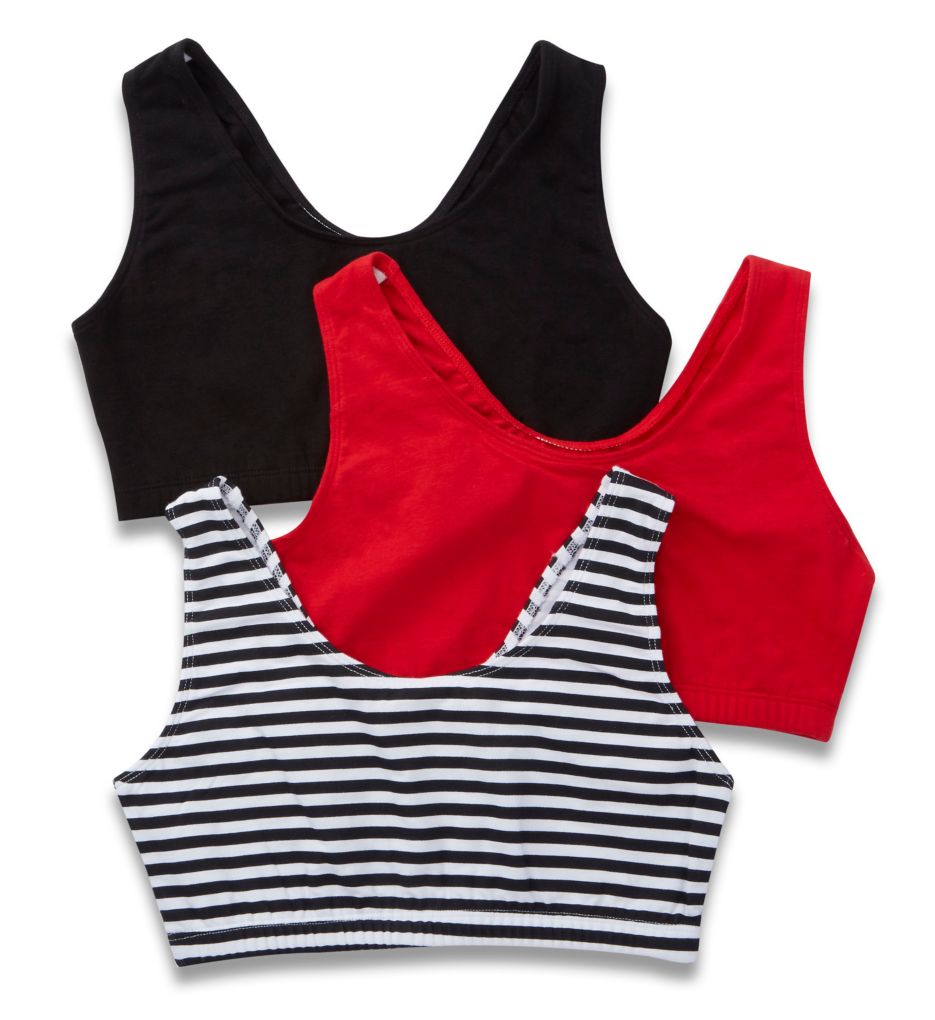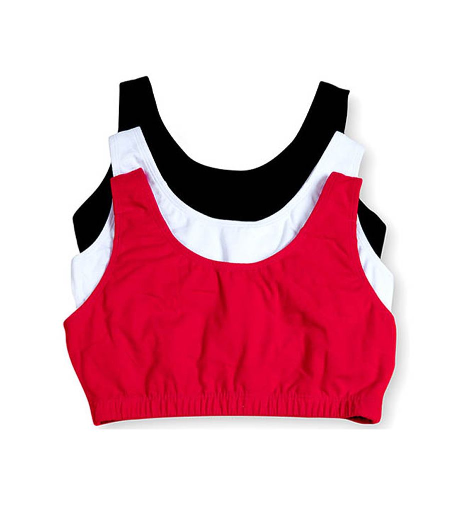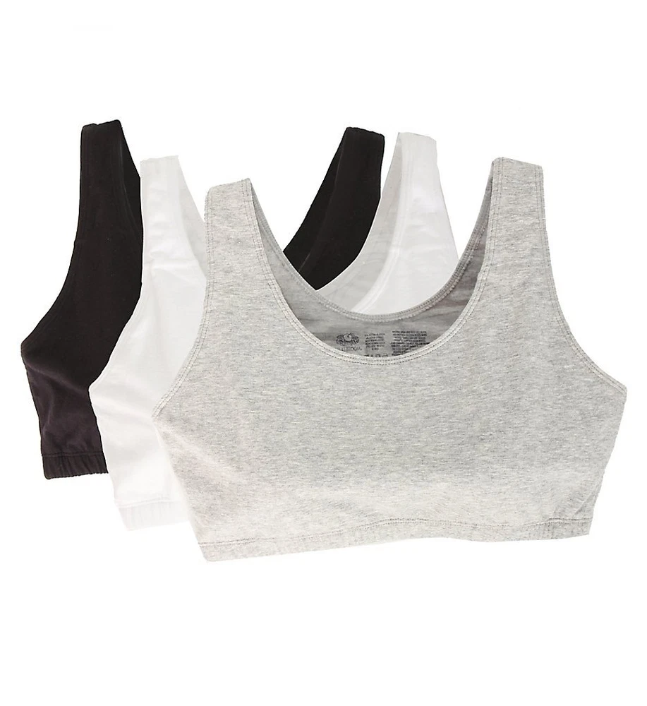 Fruit Of The Loom Tank Style Sports Bra - 3 Pack (9012). The Fruit Of The Loom Tank Style Sports Bra - 3 Pack 9012 is a low impact cotton sports bra that features tank style straps for a sporty look. Fruit Of The Loom's Tank Style Sports Bra - 3 Pack has tank styling in the front and in the back. Price includes 3 sports bras per pack. Fruit Of The Loom 9012 Tank Style Sports Bra - 3 Pack (White/Black/Grey 38) Fruit Of The Loom Tank Style Sports Bra - 3 Pack (9012). This low impact, cotton sports bra features tank style straps for a sporty look. Compression design holds breasts securely in place, which helps reduce damaging breast-bounce during exercise. Totally metal free. Made of 95% cotton and 5% Lycra spandex knit. Lined, wireless cups support with compression styling. Tall center front offers support and containment. 2-ply cotton and Lycra spandex front coverage. Soft, covered elastic bottom band also supports the bust. Tank styling in the front and in the back. Elastic lined, center-pull shoulder straps do not adjust. Tagless for comfort. Pullover styling. Price includes 3 sports bras per pack.