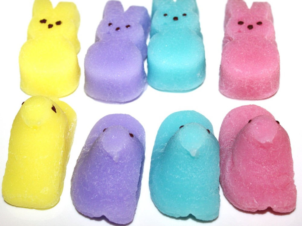 **** SHIPPING IS OFTEN CALCULATED HIGH WHEN PURCHASING MORE THAN 1 ITEM SO FEEL FREE TO MESSAGE ME FOR A SHIPPING QUOTE **** When combining purchases please click on "request total from seller" at checkout and wait for me to send you a invoice with combined shipping. If you are using your phone this option may not be available and if so just message me and I can make you a listing with everything combined and the correct amount on shipping. Thank You ;) These are my handmade highly scented MARSHMALLOW PEEPS bunny and chick wax tarts or melts that are made with a special blend of paraffin wax that allows me to add up to 10% more fragrance than most waxes. They are scented to max with FRUITI JELLY BEANS. A super sweet and super strong jelly bean fragrance brings the strawberry, raspberry, apple, sugared lemon and sweet candy notes you'll love. This is a crazy strong scent! These are so detailed and real looking you'll be amazed they are not real. They measure 2 1/2 tall x 1" thick approx. and are about the same size as the real Marshmallow PEEPS bunnies and chicks. You will receive 8 of them - 4 bunnies and 4 chicks in a cello bag labeled and tied with a homespun bow. These look great as bowl fillers too and smell wonderful just sitting out for display without melting them. They also make great Easter gifts so please be sure to check my other listings for terrific smelling candles and tarts to go with your order. *** Please note I do not accept returns for used merchandise. Must be returned in same condition as received. *** RETURNS ARE ONLY ACCEPTED IF ITEM HAS BEEN MISREPRESENTED