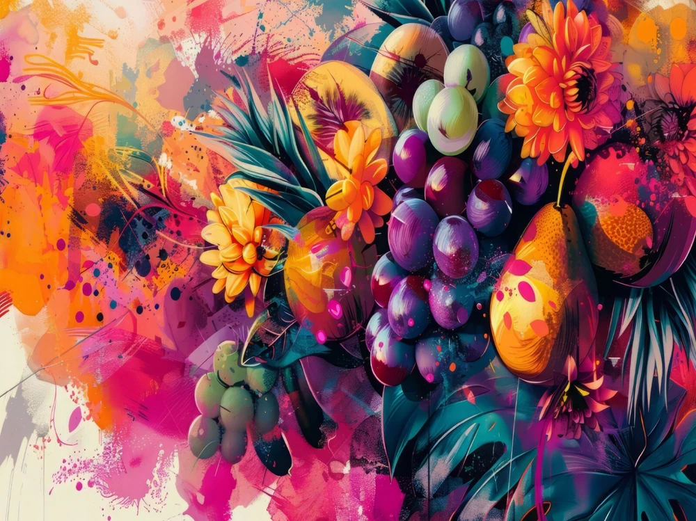 Fruits & Flower Abstract 5mm thick Plastic Poster Ready to Hang 60x45cm