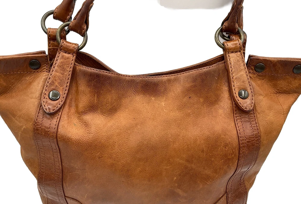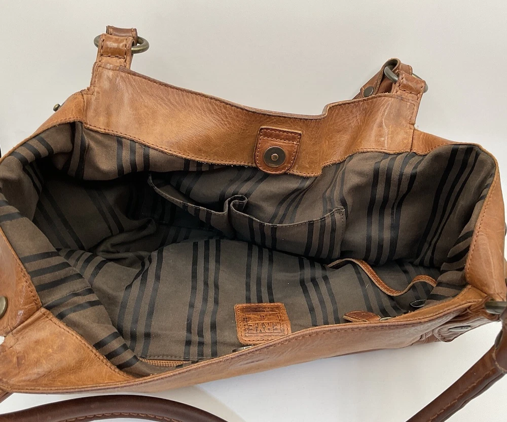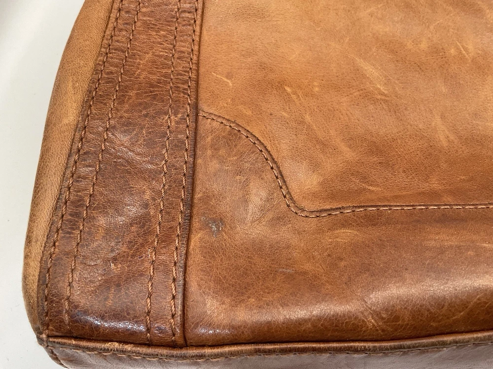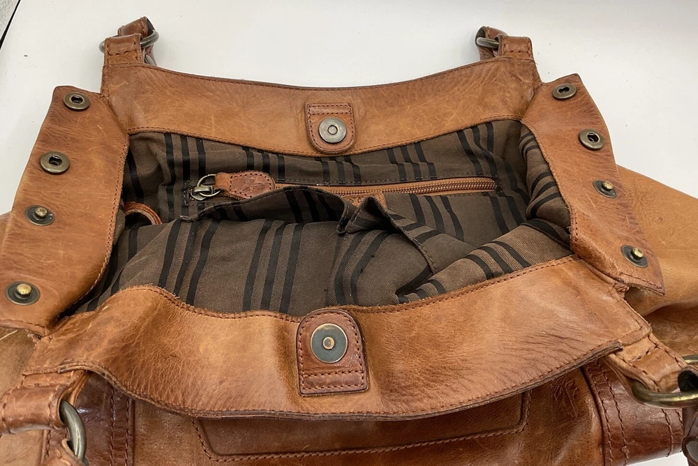 Pre-loved! Minor imperfections from normal wear/use. Beautiful soft distressed leather. See pictures as part of description. Striped lining,