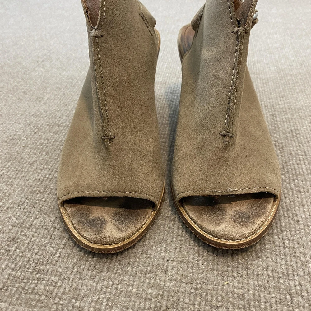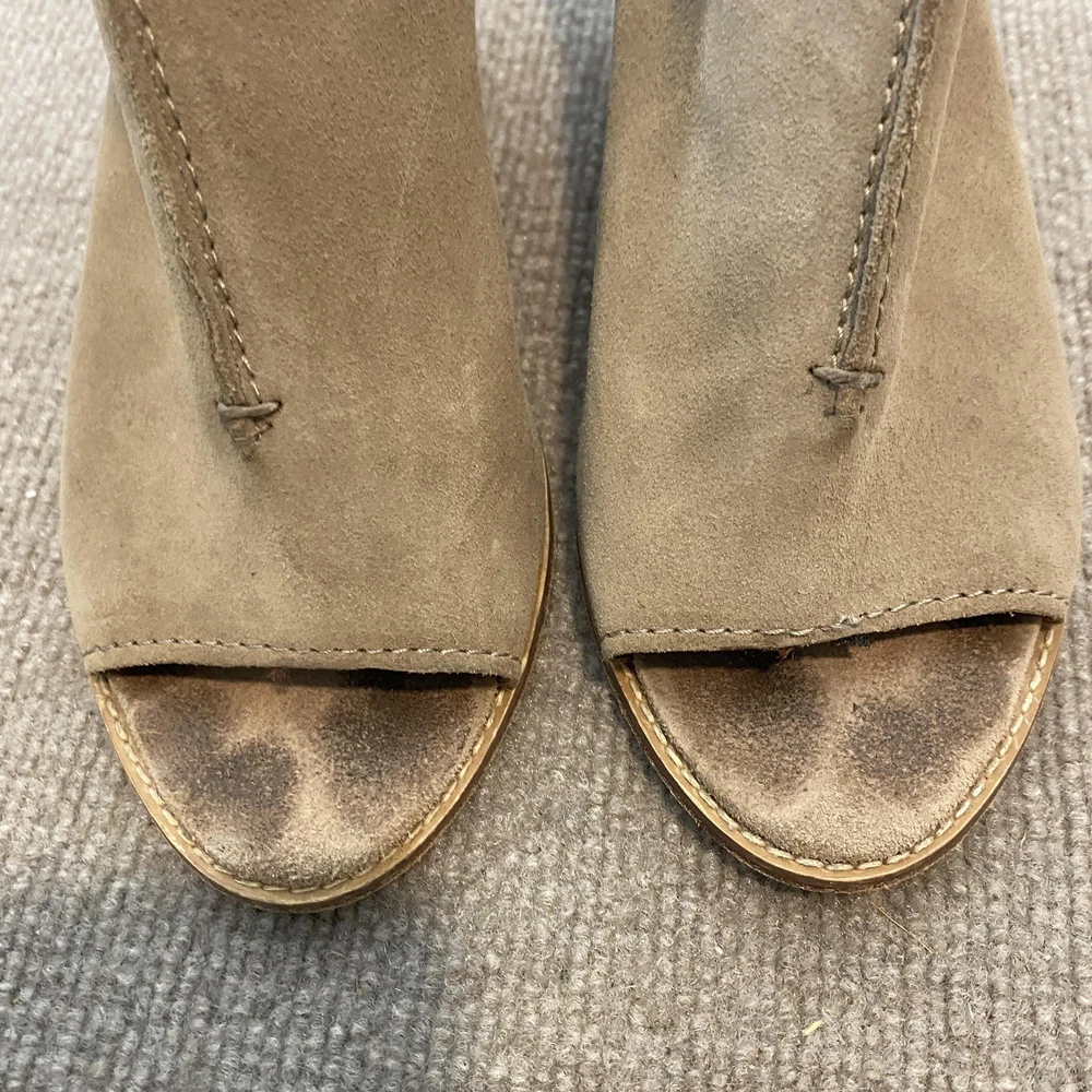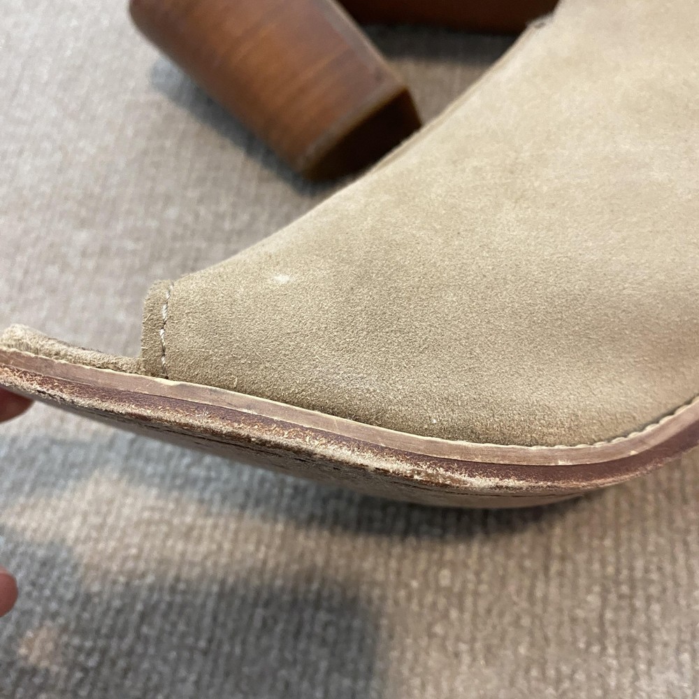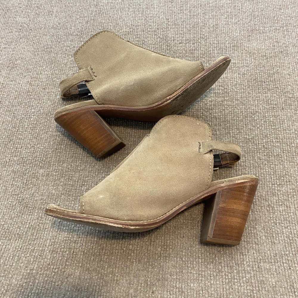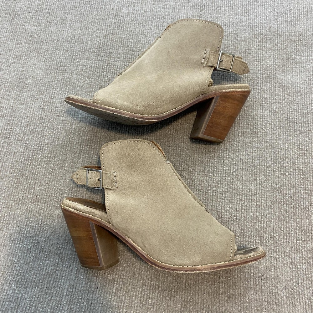 Frye Sandals Womens Size 9 Beige Suede Slingback Peep Toe Block Heel Dress