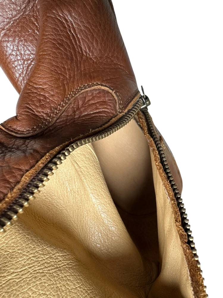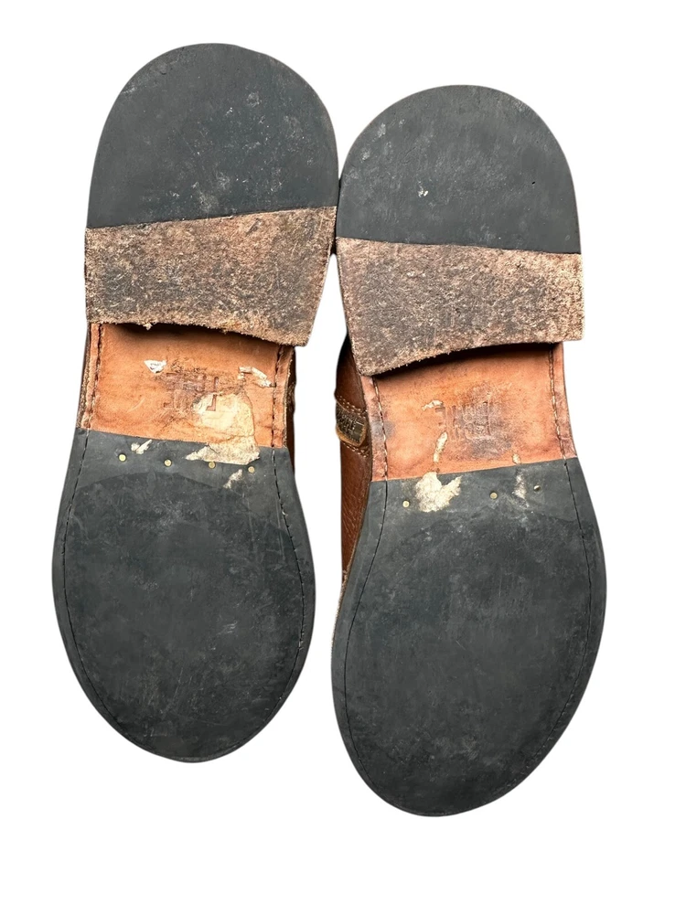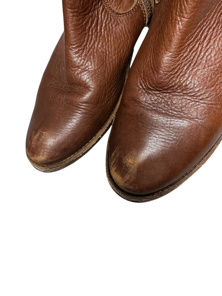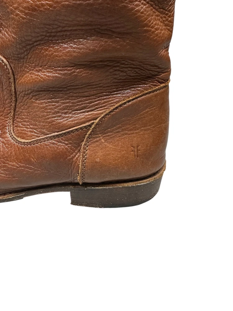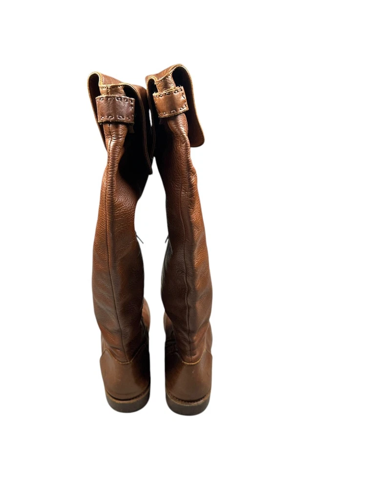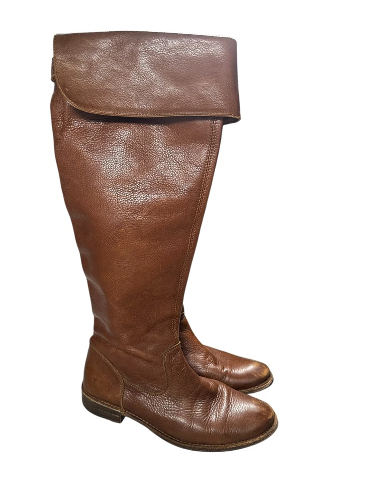 Frye Shirley Boots Leather Brown Sz 8 B Over The Knee Tall Riding Side Zip stain on fold over part - see photo Please reach out with any questions or if you are wanting additional photos!