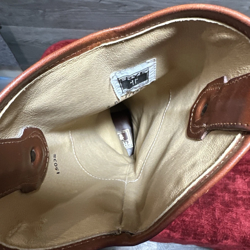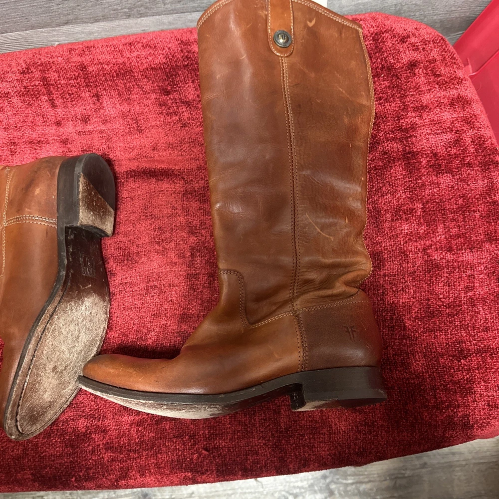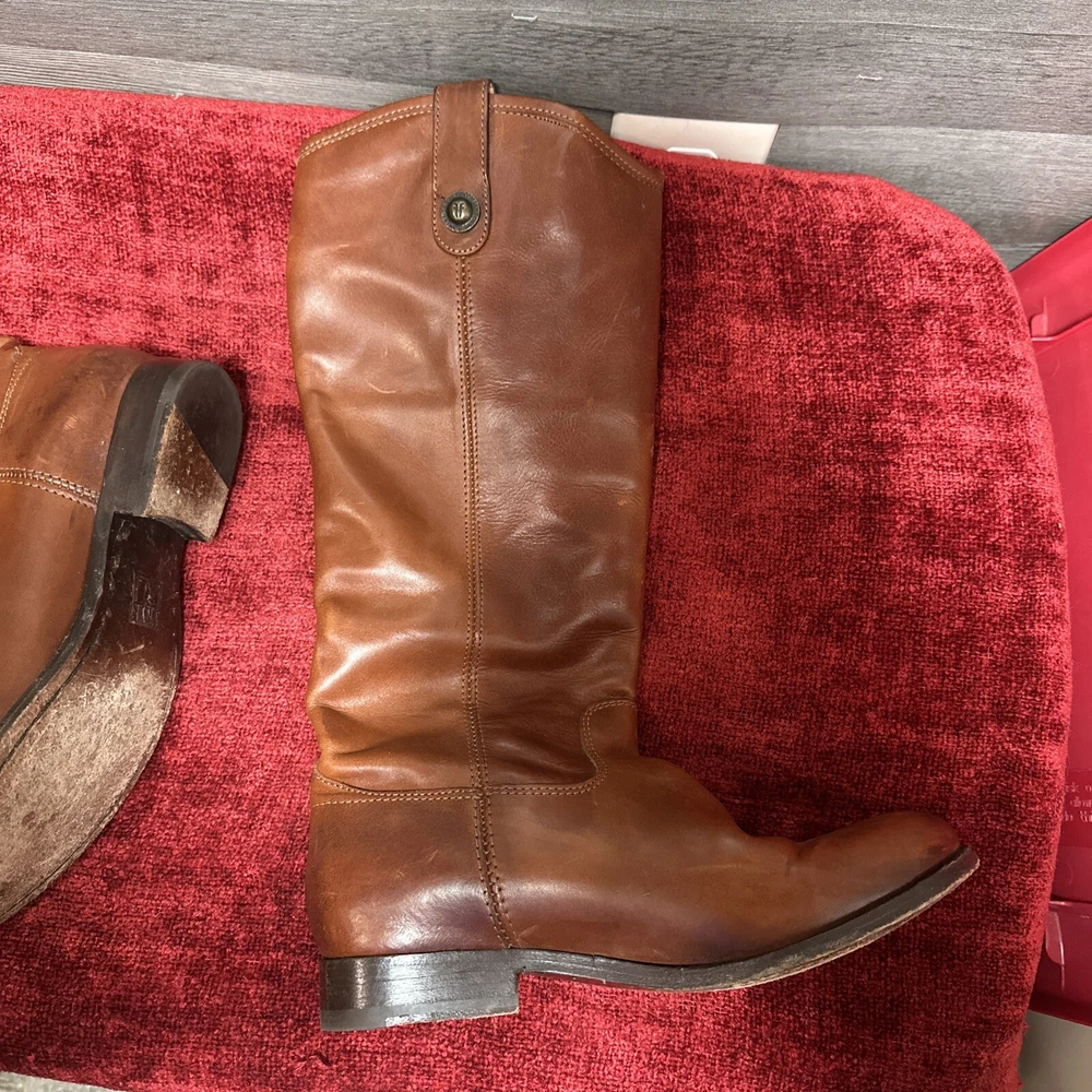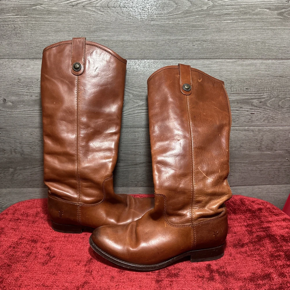 Frye Women's Melissa Button 2 Waxy Burnished Leather Tall Riding Boots Sz 6 B Some scuffing and wear see pictures insides of boots hardly have any wear