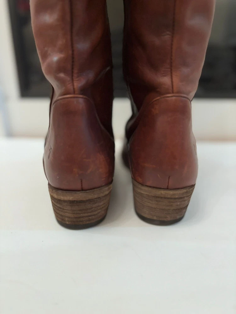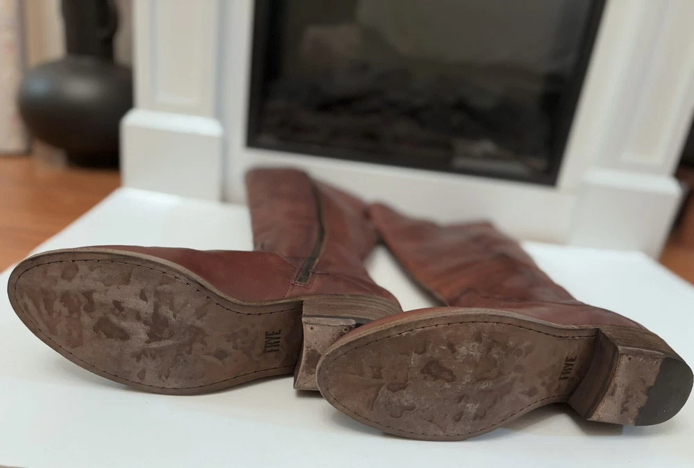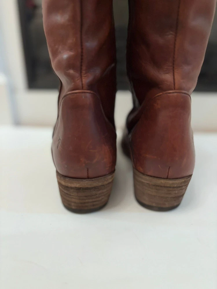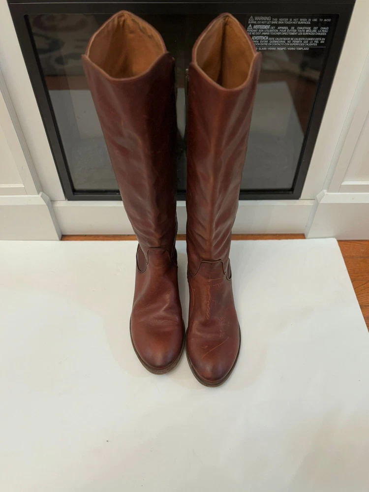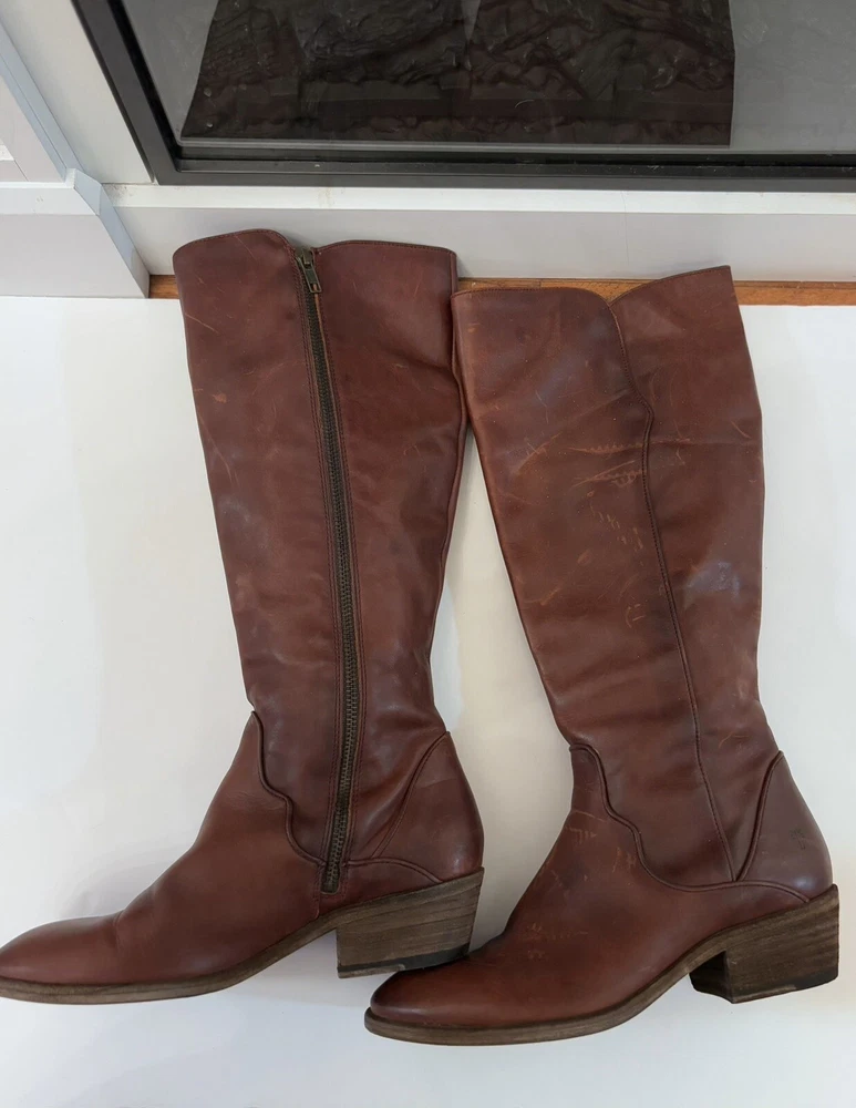 Frye Melissa Brown Riding Boots Size 8.5 Very good condition Normal scratches because the worn Almond toe Full zipper Made from leather