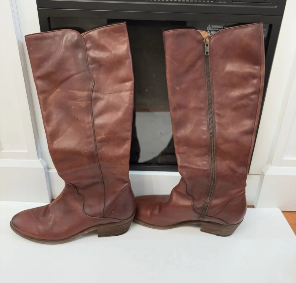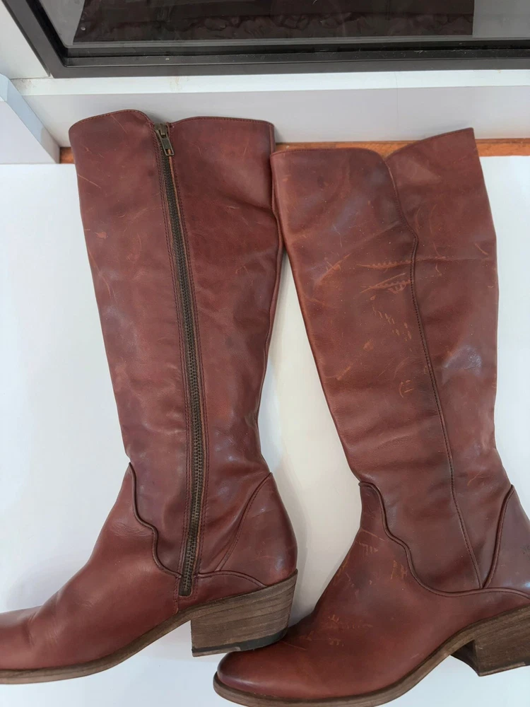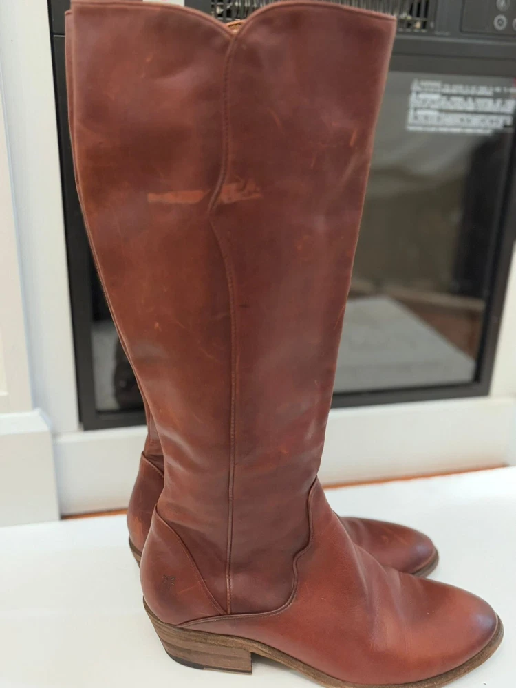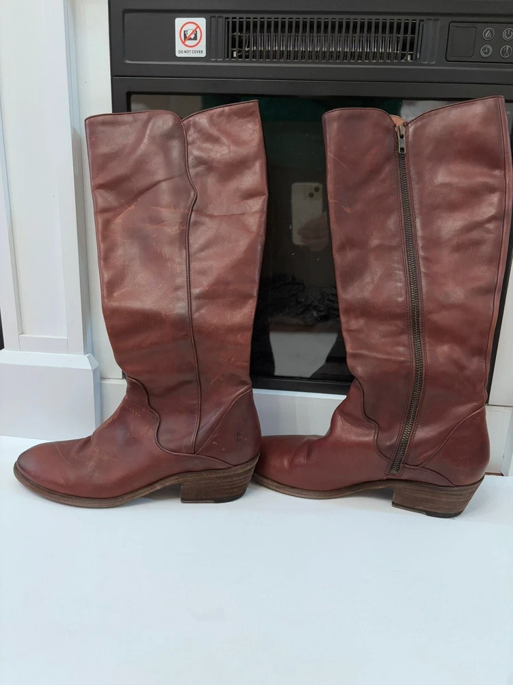 Frye Melissa Brown Riding Boots Size 8.5 Very good condition Normal scratches because the worn Almond toe Full zipper Made from leather
