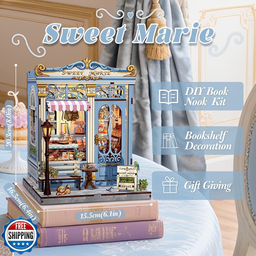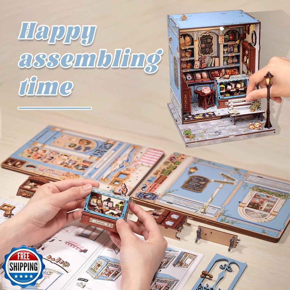 Fsolis Book Nook Kit - DIY Miniature House Kit 3D Puzzles for Adults and Beginners, 242 pcs, Booknook Bakery Bookshelf Decor Tiny House Gifts for Women Teenagers Book Lovers (Sweet Marie) Features 【Fun Designed Book Nook Kit for Adults】This Book Nook Kit is an absolute delight for anyone who enjoys crafting and loves a touch of whimsy. It's more than just a bookshelf decoration, it's a little world you create yourself. It is combination of a puzzle, a scale model and it is also a shared teen and adult bonding project 【Assembly Friendly for Beginners】The DIY corner book nook project includes 242 pre-cut pieces and 27 spare pieces which designed for beginners and teenagers, with a step-by-step manual for guidance, no challenging for beginners, very suitable for who love miniature world and mini house kit to take you into immersive experience 【Decor Bookshelf to Enchant your shelves】 The miniature book nook is a great decor for bookshelf or bookcase, a great addition to any bookshelf, it adds a charming and unexpected element to any bookshelf. It is also can be a decoration for wedding or home 【Gift Ideas for Teenagers and Adults】The DIY miniature house kit is a perfect gift for book lovers, puzzle enthusiasts, women who have hobbies. It is the best gift for holidays, like Birthday, Mother's Day, Father's Day, White Elegant, Christmas and New Year, Valentine's Day 【Friendly Reminds 】Please note that it is not a finished product, you need to assemble it. We provide customer service assistance for assembly challenges.The book nook kit requires craft glue and 2 AAA batteries (not included due to shipping restrictions), buyers need to prepare them by yourself Shipping Free & Fast Shipping: We offer free shipping to most of the USA with a normal delivery time of 3-7 days. However, due to the current situation, additional delivery time (up to 3 weeks) may be required for some items. Alternative Carriers: We may use alternative carriers (e.g., USPS, FedEx, UPS) to ensure your package arrives safely and on time. Due to the use of multiple carriers, we are unable to provide a tracking number automatically. Handling Time: Orders are processed and shipped within 1-2 business days of receiving cleared payment. Shipping Restrictions: Shipping to Alaska, Hawaii, Puerto Rico, Guam, and other US territories may incur shipping charges or delivery restrictions. Please contact us before ordering, or your order can be refunded/cancelled. State Restrictions: Certain items may not be shipped to California due to state regulations. Contact for Tracking Updates: If you require tracking updates or have any concerns about the delivery of your order, please feel free to contact us, and we will be happy to assist you. Return Policy 30-Day Hassle-Free Returns: If you are not completely satisfied with your purchase, you can return the item for free within 30 days of receiving it for a full refund or exchange. Easy Return Process: Contact us, and we will provide you with a prepaid return shipping label and detailed instructions. No Restocking Fee: There are no restocking fees for returns. However, the buyer is responsible for return shipping costs if the return is not due to a seller"s error. Refund Processing: Refunds will be processed within 1 business day of receiving the returned item in its original condition. Feedback Your feedback is extremely important to us. We strive to provide the best products and customer service possible. If you are satisfied with your purchase, please take a moment to leave us a positive review. If you have any concerns or issues with your order, please contact us before leaving negative feedback. We are committed to resolving any problems and ensuring your satisfaction. Contact Us If you have any questions or concerns, please feel free to reach out to our customer support team. You can contact us through the eBay messaging system. We are available Monday to Friday, 9:00 am to 5:00 pm EST, and we will do our best to respond to your inquiry within 24 hours. Thank you for supporting our small family business!