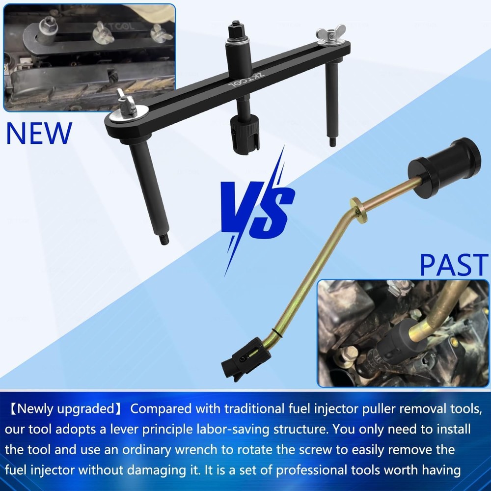 【Widely compatible】Compatible with Land Rover Jaguar 3.0 5.0 petrol engine. Compatible with Jaguar X150, XK Series, X250(XF), XJ models which with V8 5.0lt petrol engines. Compatible with Land Rover Discovery 4, new Range Rover, Range Rover Sport which with V8 5.0lt petrol engines. 【Newly upgraded】 Compared with traditional fuel injector puller removal tools, our tool adopts a lever principle labor-saving structure. You only need to install the tool and use an ordinary wrench to rotate the screw to easily remove the fuel injector without damaging it. It is a set of professional tools worth having 【It is easier to disassemble the fuel injection】 Normally, the injectors on vehicles are usually difficult to pull using traditional fuel injector removal tools, using the ZKTOOL upgraded fuel injector puller removal tool, you can easily remove the fuel injector in a small space 【Excellent performance and material】 This product adopts a horizontal stable structure, which increases the stability of the tools, and is made of high -strength metal materials. It has the characteristics of super strong service life and is not easy to damage. The combination of excellent performance and materials is an essential tool for removing fuel injection. 【Warm Tips】 In order to save your time, we hope that you can operate according to the video and operation steps we provide, so that you can have a better use process. Thank you for your support and cooperation!