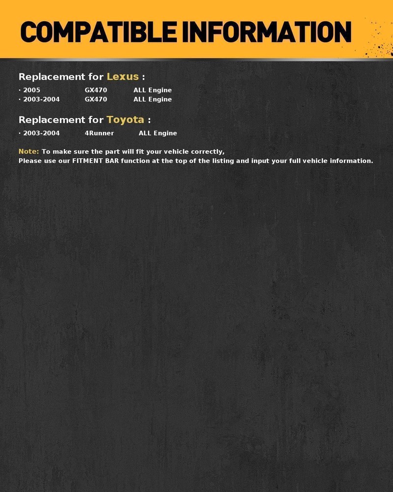 Advantages of KAC Fuel Pump Fuel supply: The Fuel pump assembly can provide stable fuel flow and pressure, ensuring the normal operation of the engine. Boosting: The Fuel pump assembly can increase the pressure of fuel, sending it into the high-pressure fuel rail to meet the needs of high-pressure fuel systems such as direct injection engines. Filtering: The fuel filter in the Fuel pump assembly can filter out impurities and pollutants in the fuel, preventing them from entering the engine. Pressure regulation: The pressure regulator in the electronic Fuel pump assembly is used to control the pressure of the fuel and ensure the stability of the fuel supply. Item Type: Electric Fuel Pump Assembly Condition: Brand New Warranty: One Year Warranty OE Number: 7702035062, E9077M, FG1764 Quantity Sold: One Piece Vehicle Information: Make Model Year Engine Fuel Body Style Lexus GX470 2003-2005 V8 4.7L Petrol Sport Utility Toyota 4Runner 2003-2004 V6 4.0L Petrol Sport Utility Toyota 4Runner 2003-2004 V8 4.7L Petrol Sport Utility Product Specifications: Product Type Fuel Pump Assembly Inlet Type Strainer Pressure Sensor Inclued Yes Sending Unit Inclued Yes Float Included Yes Voltage 12V Package Quantity 1 Packaging Type Box Fitment Direct Replacement Payment Shipping Return Policy Contact Us About Warranty 1) we accepts all major credit cards via PayPal: MasterCard, Visa, American Express and Discover. 2) We will only ship to the confirmed PayPal shipping address given with the payment. Please make sure your PayPal and eBay address is correct. If not, please correct it before payment. Thank you. 3) If you want to ship to another address, please change your PayPal shipping address before you make payment. 4) To avoid initiating an unpaid item claim, please pay within 7 days. 5) Custom duties, taxes, or charges are not included in the cost you pay to us. We only ship this item to United States ! 1. We ship to your eBay address. Each package will be shipped by UPS or Fedex with tracking number. 2. Ship within 1 business day once payment completed. Orders placed on weekend will be shipped within 3 days. 4. Seriously promise: Refund or resend will be offered if item still not arrive in 7-10 business days. Just send us an email ,we will give you a satisfied solution as soon as possible. If you send us an e-mail, it will be answered within 48 hours during our working hours. Please feel free to contact us if you have any questions: Dear my friend,we appreciate your support.And our goal is service you well and give you a pleasant shopping time in our store. ✅Dear customer, when you want to return or exchange goods (Please contact us first, instead of directly initiating a dispute) 1: Contact the seller first 2: Send pictures: outer packaging&scanned labels&item itself&with complete accessories, etc necessary condition Rule A: The original packaging of the item is in an unused state. Rule B: The outer packaging must not have any damage. 3: Obtain return label 4: Delivered Projects - Payment Repayment ✅A 15% restocking and shelving fee will be charged for returns or exchanges that are not caused by the seller and are in good condition. Exchange will not charge restocking fees or shipping fees due to transportation errors ✅Priority In case of the following reasons, the freight will be borne by the buyer 1: Unexpected order 2: Find a better price 3: Change your mind 4: Buy more items/make mistakes/misread model information ✅Please note Missing accessories/quality issues/transportation damage, etc Please contact us first to obtain a good solution, rather than directly opening a return dispute. Thank you very much for your understanding. I hope we have a pleasant cooperation! Contact us if you have any question, Give us a chance to serve you, negative feedback could not solve anything, communication Please! ❎ (NO) Three stars is LOW star, NO 1,2,3 stars PLEASE! ✅(YES) Please give us Five-star! Have Question or Problem?? Step 1: Contact seller Step 2: Select the 1st topic: I have a question about using my item or I want to send the seller a message. NO others please! Step 3: Describe your question clearly; we will give you the best solution Please leave five stars positive feedback positive comment and Five-Stars. * We maintain a high standard of excellence (5 star rating) and strive for 100% customer satisfaction! * Feedback is very important to us. * We would like you to contact us immediately before giving us neutral or negative feedback so that we can address your concerns to our satisfaction. * If we don't understand these problems, we won't be able to solve them! * After understanding the problem, we will be able to give you a satisfactory answer! It's highly appreciated you leave us positive feedback and 5 star rating comments if you are satisfied with our service! Your comment is very important in our business success. About Warranty ✅ Free repair: During the warranty period, if the product fails due to manufacturing defects, component failure or workmanship problems, please contact us to provide corresponding handling methods. ✅ Warranty period: The warranty period is usually calculated from the date of purchase, and the specific period may vary depend on the product type and brand. ✅ Extended warranty: Some manufacturers may provide additional extended warranty services, which usually require additional fees and may extend the original warranty period or provide a wider warranty coverage ✅ Warranty terms: The repairer needs to use components and spare parts that meet the technical requirements of the product, carefully record the failure and the quality of the product after repair, and ensure that the repaired product can be used normally for more than 30 days. ✅ Note: If there are any problems with the product received, please provide all relevant videos, pictures and other clues to facilitate our cunstomer service department and processing the issuse for you . Thank you for your s