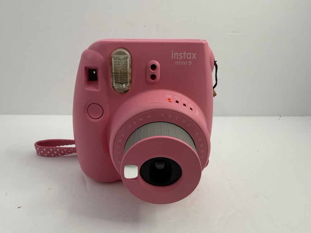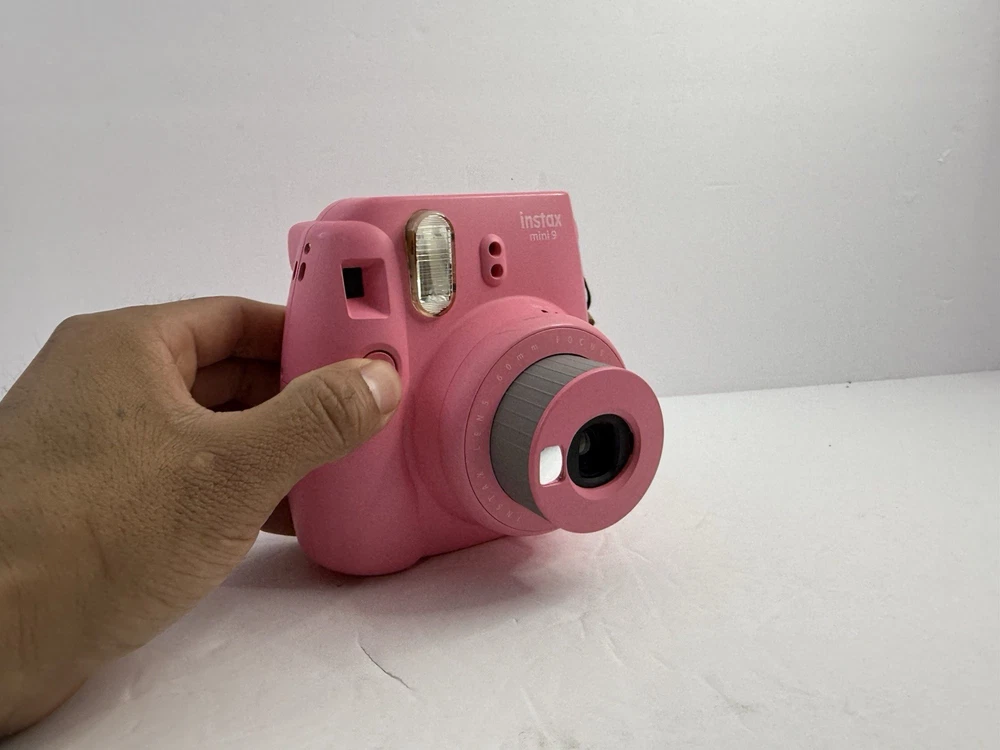 Fuji Instax Mini 9 Fujifilm Instant Film Camera Flamingo Pink Has some kind of defect on the flash clear plastic but doesn’t affect the flashing Tested and working See pics before you buy Thanks 🤙🏼🙏🏼
