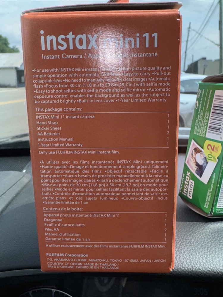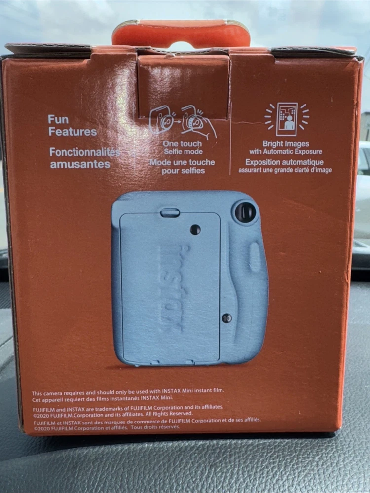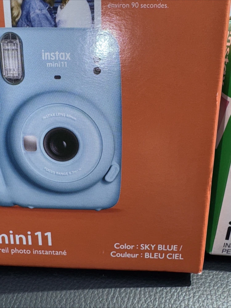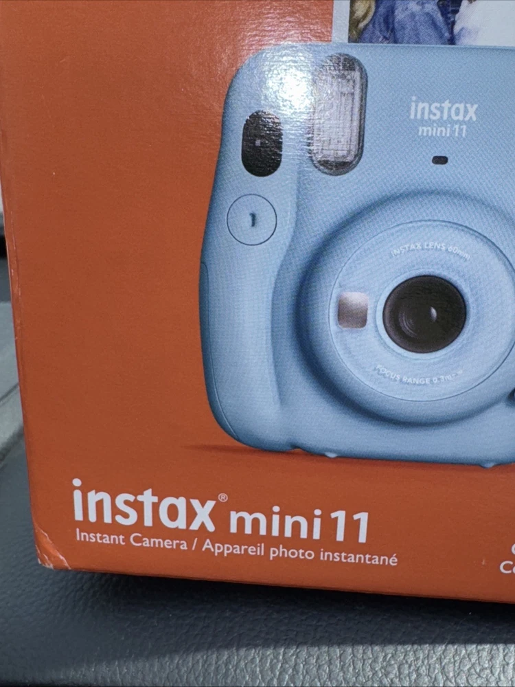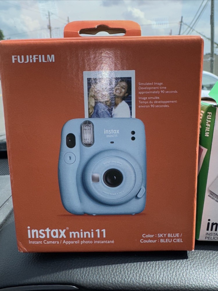 Film has never been opened! Camera has never been removed from the box! Fujifilm Insta mini 11 Sky blue Instant camera Film features, one touch bright images with automatic exposure You will receive a pack of Fujifilm that has 10 sheets per pack and you will receive two packs which gives you a total of 20 instant mini pictures Film expired 2/2025