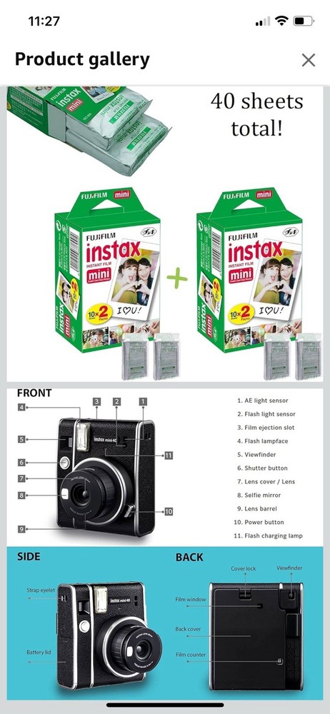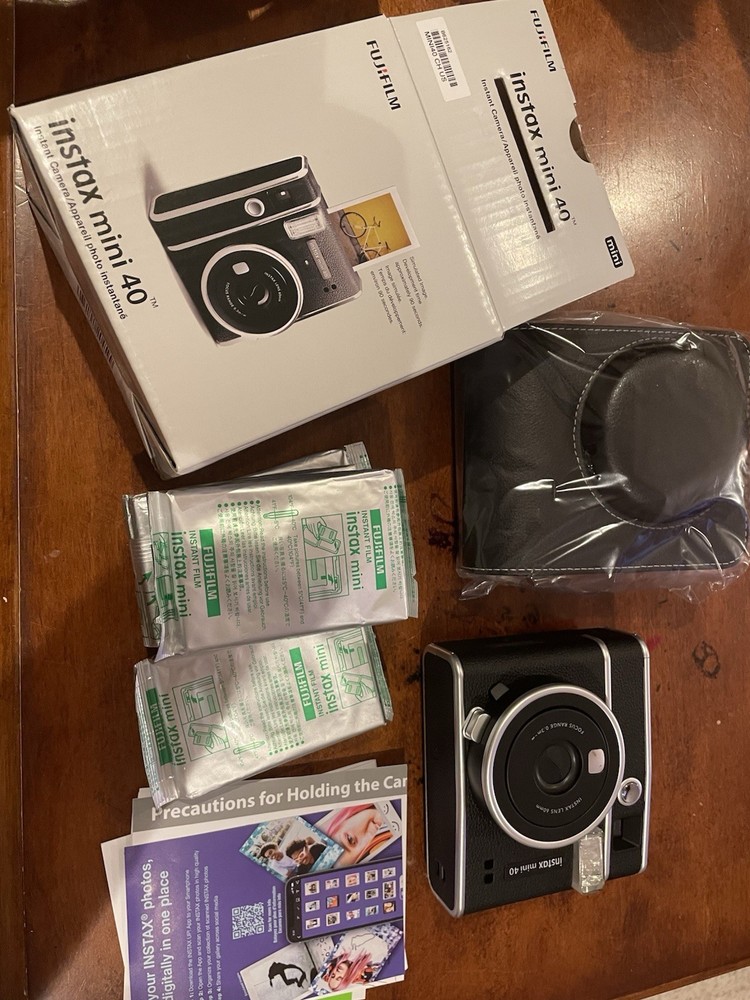 Fujifilm Instax Mini 40 Instant Camera Vintage Black. + Fujifilm Value Pack (40 Sheets) + Shutter Accessories Bundle, includes Vintage Style Compatible Carrying Case, Black Photo Album 64 Pockets