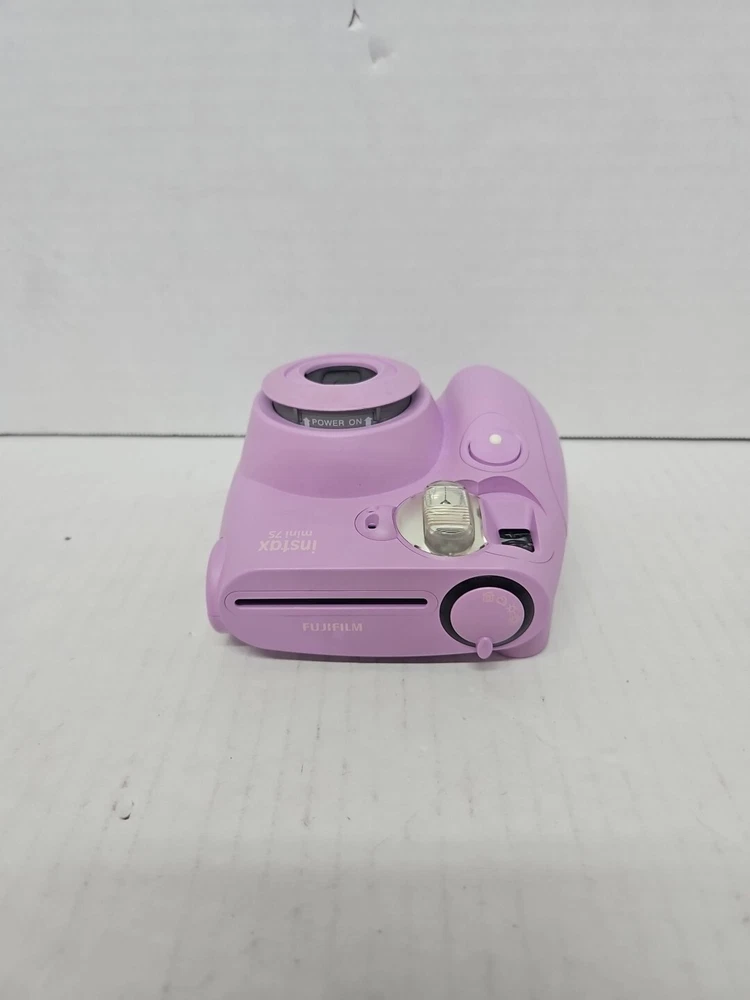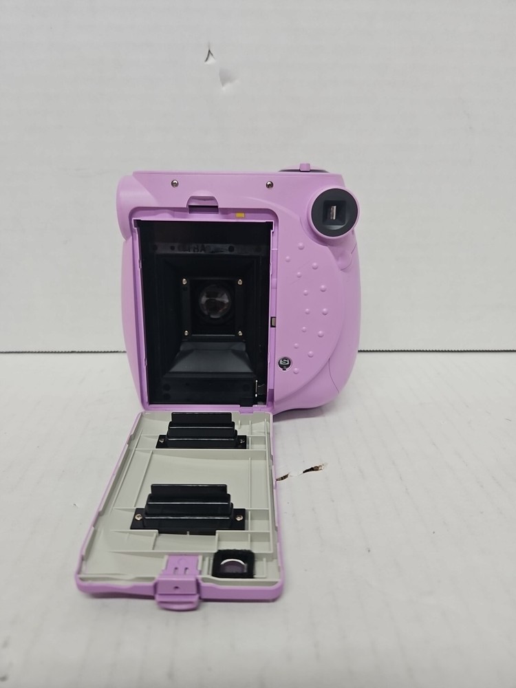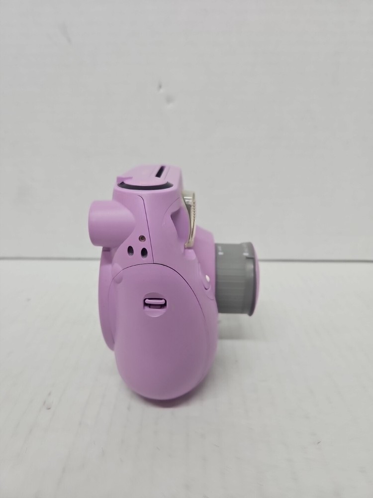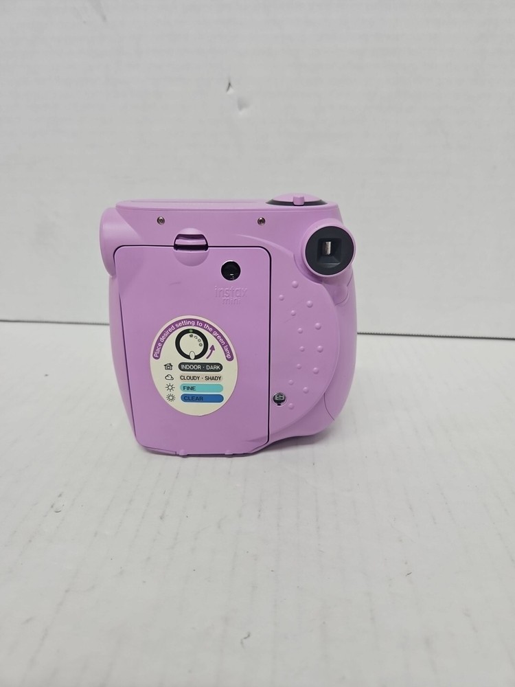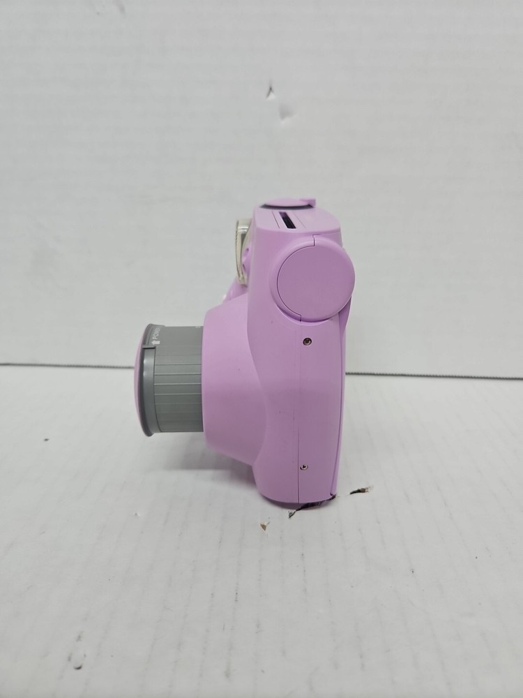 Fujifilm Instax Mini 7S Instant Camera in Lavender Purple is a compact film camera that produces instant photos in the Instax Mini format. The camera has been tested and is confirmed to be in working condition. It is a stylish choice for capturing memories on-the-go with its fun and easy-to-use features.