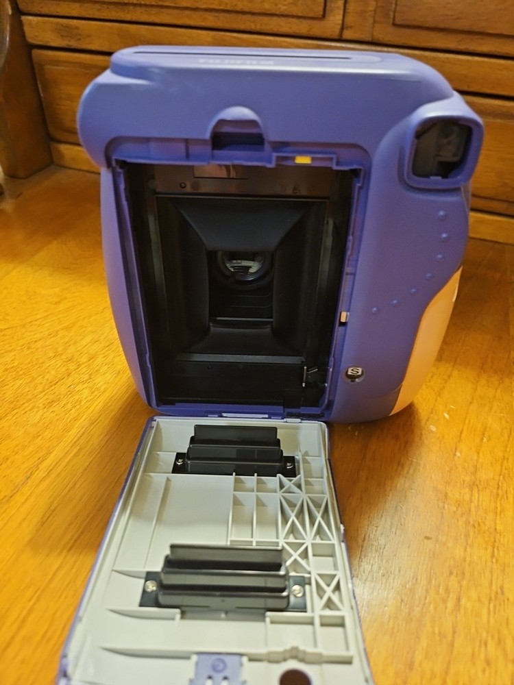 This Fujifilm Instax Mini 8 instant camera in dark purple is a great addition to your photography gear. It features auto exposure and built-in flash for perfect shots every time. The camera is tested and working, and it comes with a pink battery cover for easy identification. With its compact design and auto focus, this camera is perfect for on-the-go photography. It uses Instax Mini format film and was manufactured in China. This camera is a great choice for anyone looking to capture memories in a fun and easy way.