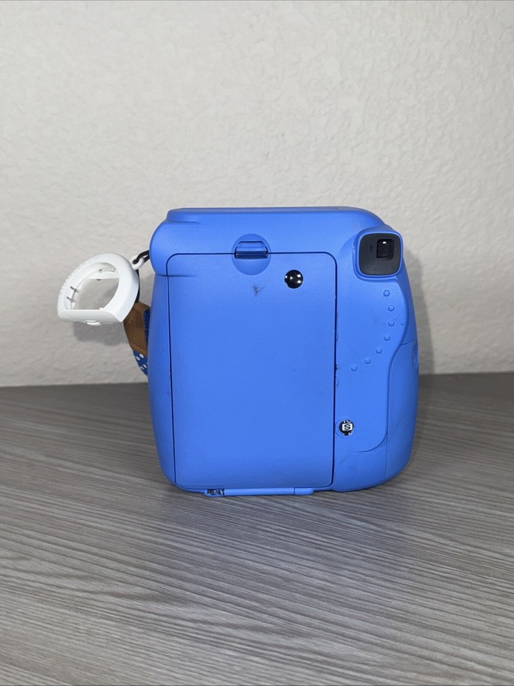 This is a Fujifilm Instax Mini 9 Instant Camera in Cobalt Blue, with a 4.6x6.2cm photo format. It is an auto-focus camera that includes a case. The model is designed for instant photography and is manufactured in the Philippines. The unit quantity is one. The camera has been tested and confirmed to be in working condition.