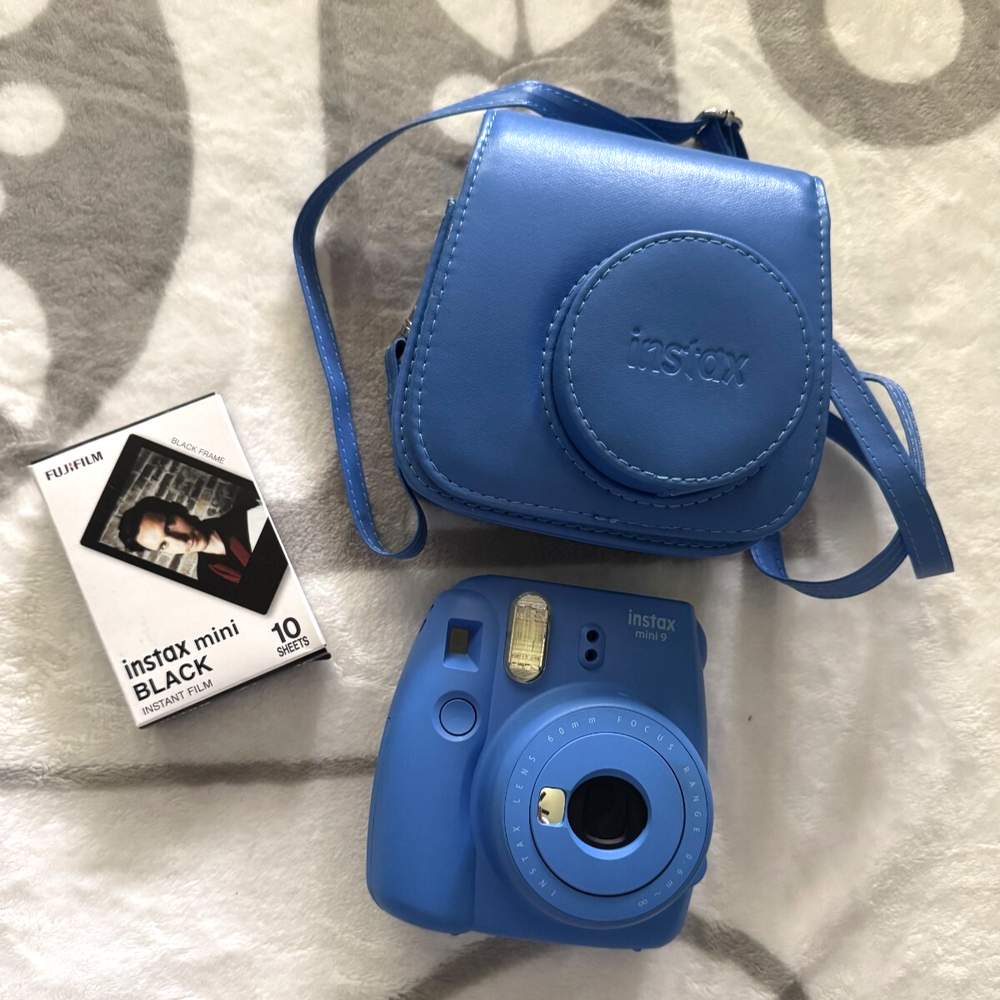 The Fujifilm Instax Mini 9 in Cobalt Blue is a compact instant film camera that captures images in a 4.6x6.2cm format. It features auto focus, a built-in flash, and comes with a case and film included. This lightweight camera is easy to use and perfect for those looking to enjoy the convenience of instant photography. Very nice condition-light use Comes with a 10 pack of Film and batteries We welcome any questions or requests for additional photos. Thanks for Looking
