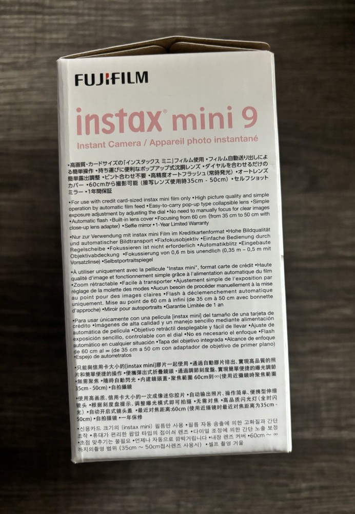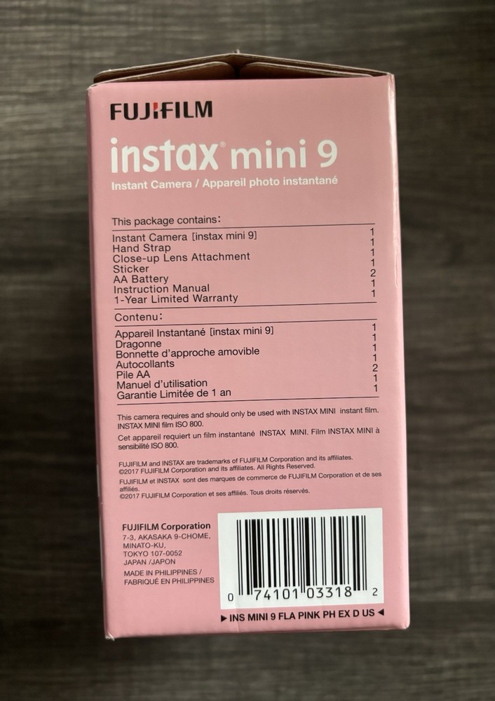 Item Weight:0.675lbs.Focus Type:Auto_desc_:This camera is great for children learning to take pictures. It comes in vivid Flamingo Pink so it is easy to find. The camera is built for the novice and includes an optical viewfinder with a target spot to frame photos. There is a selfie mirror built into the lens that kids will love. The auto-flash and auto exposure mode make photo snapping a pleasurable experience. The camera comes with a close-up lens, too.GTIN:0074101033182gtin13:0074101033182Film Type:InstantFeatures:Auto Exposure, Built-in FlashColor:PinkBrand:FujifilmType:InstantMPN:16550631Model:Instax Mini 9Camera Type:InstantFormat:Instax MiniUPC:0793585086285, 0074101033182Release Date:2017