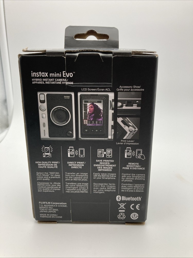 [Mint] FUJIFILM instax mini EVO Hybrid Instant Camera Black From JAPAN Description Total Condition MINT Appearance The appearance is beautiful. It remains clean with only minor scuffs and scratches. We have prepared many images of the product. Please check them as well. Optics Finder Beautiful condition. There is no fog, fungus, balsam separation, scratches, or large dust. The view is clear with no issues. Lens Beautiful condition. There is no fog, fungus, balsam separation, scratches, or large dust. Performs flawlessly with no issues in shooting. Functionality It works properly. Bundled Items Everything shown in the pictures is included. The condition described is based on my personal assessment. Please review the photos carefully, and feel free to contact me if you have any questions! Shipping We ship via FedEx International Priority with tracking number. Orders are processed and shipped within 3 business days after the payment has been cleared. Shipping is available Monday through Friday; weekends are excluded. Returns Unconditional Return Policy Customer satisfaction is our top priority. We offer an unconditional return policy if you contact us within 30 days of receiving the item. All returned items must be in their original condition. Please contact us before returning any item. Return shipping costs will be covered by the seller. International Buyers Please Note: Import duties, taxes, and charges are not included in the item price or shipping cost. These charges are the buyer's responsibility. Please check with your country's customs office to determine what these additional costs will be prior to bidding or buying.