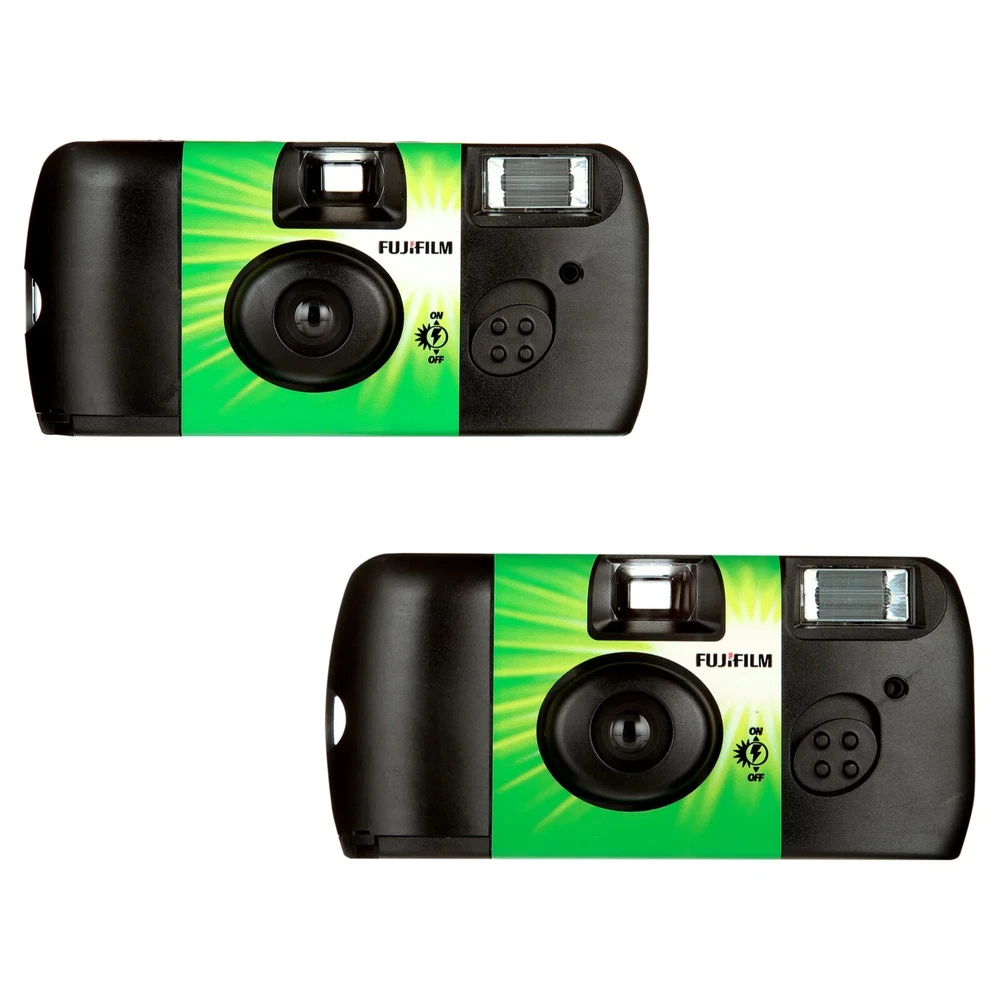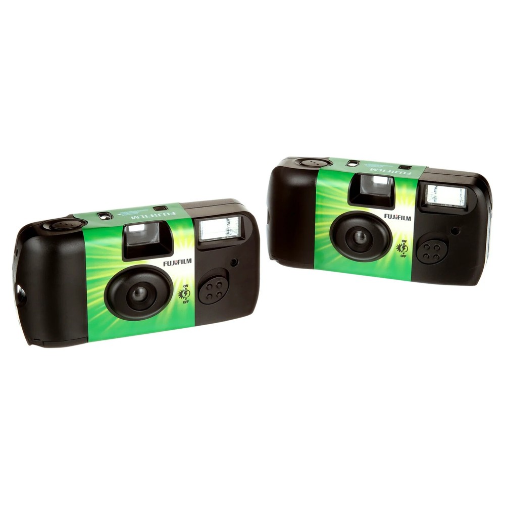 Product details The Fujifilm Disposable 35mm Camera enables you to take pictures anytime and share the fun with your friends. It features 27 exposures to help you capture a variety of photos. The Fujifilm Disposable Camera comes complete with Superia X-TRA 400 film that provides you with quality images when developed. This item offers you an economical way to supply all your guests with a camera to capture special moments at significant events. The camera comes complete with a flash so it can be used in all conditions. You can put it on tables at weddings or other special occasions so your guests can take photos. Fujifilm Disposable 35mm Camera with Flash 2 Pack: re-loaded with Superia X-TRA 400 film 27 exposures Available in single or double pack Shoot and share your favorite fun-packed moments Clear, sharp images upon developing Economical way to supply guests with photo-power Use on tables at special events for guest entertainment or on vacation Disposable camera with flash, 2 Pack