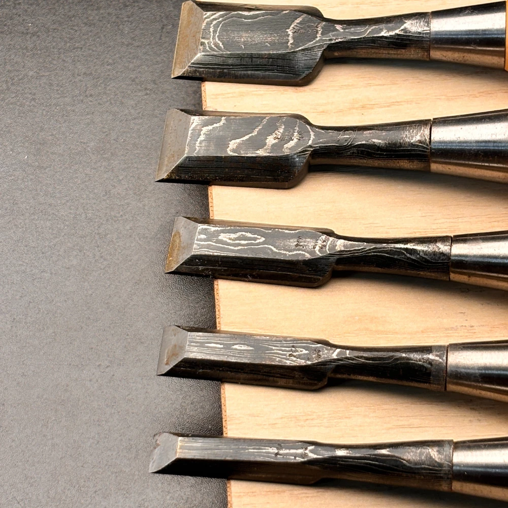 Vintage NOS · Unused · Aogami Steel · Discontinued Set Fujihiro 藤廣 5-Piece Bench Chisel Set Oire Nomi · Blue Paper Steel · Tsuge Handle · Niigata Japan A rare heirloom-grade set by a master craftsman of Niigata — curated by Ichizo Hamono Honpo ◈ Vintage NOS — Unused · Setup Required Before Use New Old Stock (NOS) from long-term storage. Technically unused, blades in excellent condition. As with all long-stored stock, minor surface patina on the blades and light aging to the original presentation box may be present. This set will not be restocked. Please review all photos carefully before purchasing. A rare complete set of Fujihiro (藤廣) bench chisels, hand-forged by a master craftsman in Niigata Prefecture — a region with a deep and distinguished tradition in Japanese blade-making. Each chisel is forged from Blue Paper Steel (Aogami / 青紙鋼) , prized among professional woodworkers for its exceptional edge retention, toughness, and capacity to take a razor-sharp finish. The handles are turned from Japanese Boxwood (Tsuge / 椿材) , a dense premium hardwood celebrated for its fine-grained texture and warm yellow tone — among the most refined handle materials in traditional Japanese toolmaking. This five-piece set has been discontinued and is no longer in production, making it a significant find on the current market. Technical Specifications Maker Fujihiro (藤廣) Type Bench Chisels — 5-Piece Set (追入鑿 / Oire Nomi) Blade Widths 9 mm, 12 mm, 15 mm, 21 mm, 24 mm Steel Blue Paper Steel (Aogami / 青紙鋼) Handle Material Japanese Boxwood (Tsuge / 椿材) Making Method Hand Forged Origin Niigata, Japan Box Original presentation box included (5-piece set box; minor aging from storage) Condition New Old Stock (NOS) — Unused, listed as "Used" for transparency Steel Note Steel type is identified based on information provided by our wholesale supplier at the time of purchase. Official mill certification is not included. Condition Details New Old Stock — Please Check All Photos Originally unused stock (New Old Stock / NOS), listed as "Used" for transparency due to signs of long-term storage (e.g., minor patina on the blades). The original five-piece presentation box shows light cosmetic aging consistent with decades of storage; the chisels themselves remain unused. This is a one-of-a-kind set with no restock available. Please review all photos carefully to judge the condition for yourself. Setup Required Important — Not Ready to Use Out of the Box Like all traditional Japanese bench chisels, each chisel in this set requires initial setup before professional use: Hoop Seating (Katsura-uchi): The metal ferrule on each handle must be properly seated before first use to prevent splitting under mallet work. Initial Sharpening: Each blade requires sharpening and back preparation (ura-dashi / ura-oshi) before use. The backs must be lapped flat on a whetstone. Carbon Steel Care: Aogami is high-carbon steel and will rust if left damp. Wipe dry after each use and apply a light coat of oil before storage. Experience Recommended: These tools are intended for users familiar with the setup and maintenance of traditional Japanese woodworking chisels. Safety & Use Notice 01 Personal Protective Equipment (PPE) Always wear eye protection. Flying chips and wood debris can cause serious injury. Consider cut-resistant gloves and hearing protection depending on the work environment. 02 Correct Use / Misuse Chisels are cutting tools. Always keep hands behind the cutting edge. Do not use as a pry bar, wedge, or screwdriver. Do not strike the blade with a metal hammer. Secure your workpiece firmly. Always cut away from your body. 03 Hammer / Mallet Guidance Use an appropriate Japanese or wooden mallet. Striking with excessive force or with an unsuitable hammer risks cracking the Tsuge handle or dislodging the hoop. Inspect all handles before each use session. 04 Carbon Steel Care Blue Paper Steel (Aogami) is high-carbon steel with no rust resistance. Wipe all blades dry immediately after use. Apply a light coat of camellia oil or similar before storage. Never leave in contact with moisture or acidic materials. 05 Steel Information Steel type is based on expert wholesaler information at the time of purchase. Official mill certification is not included with this item. 06 Box / Packaging The original five-piece presentation box is included. Cosmetic aging of the box is normal for long-stored NOS stock and does not affect the tools in any way. 07 Warranty / Liability Sold AS IS / WITH ALL FAULTS to the extent permitted by law. User assumes all risks of use, setup, sharpening, and maintenance. 08 Questions? We are specialists in Japanese cutlery and woodworking tools. If you have any questions about setup, sharpening, or maintenance, please send us a message through eBay. We aim to respond within 24 hours. Shipping & Combined Savings 🇺🇸 USA Shipping (DDP) All customs duties and taxes are included in the shipping cost. No surprise fees upon delivery. 💡 Exclusive Promo: 2nd Item Ships FREE Add a Japanese pull saw, a hand plane, or a handcrafted kitchen knife to your order — the 2nd item ships at no extra cost. Build your complete Japanese woodworking toolkit and save significantly on shipping. Licensed Antique Dealer Licensed by the Japanese Public Safety Commission. Authentic Japanese craftsman's tools, carefully selected by seasoned buyers rooted in the Banshu blade-making tradition. Questions? Please contact us via eBay Messages. We aim to respond within 24 hours.