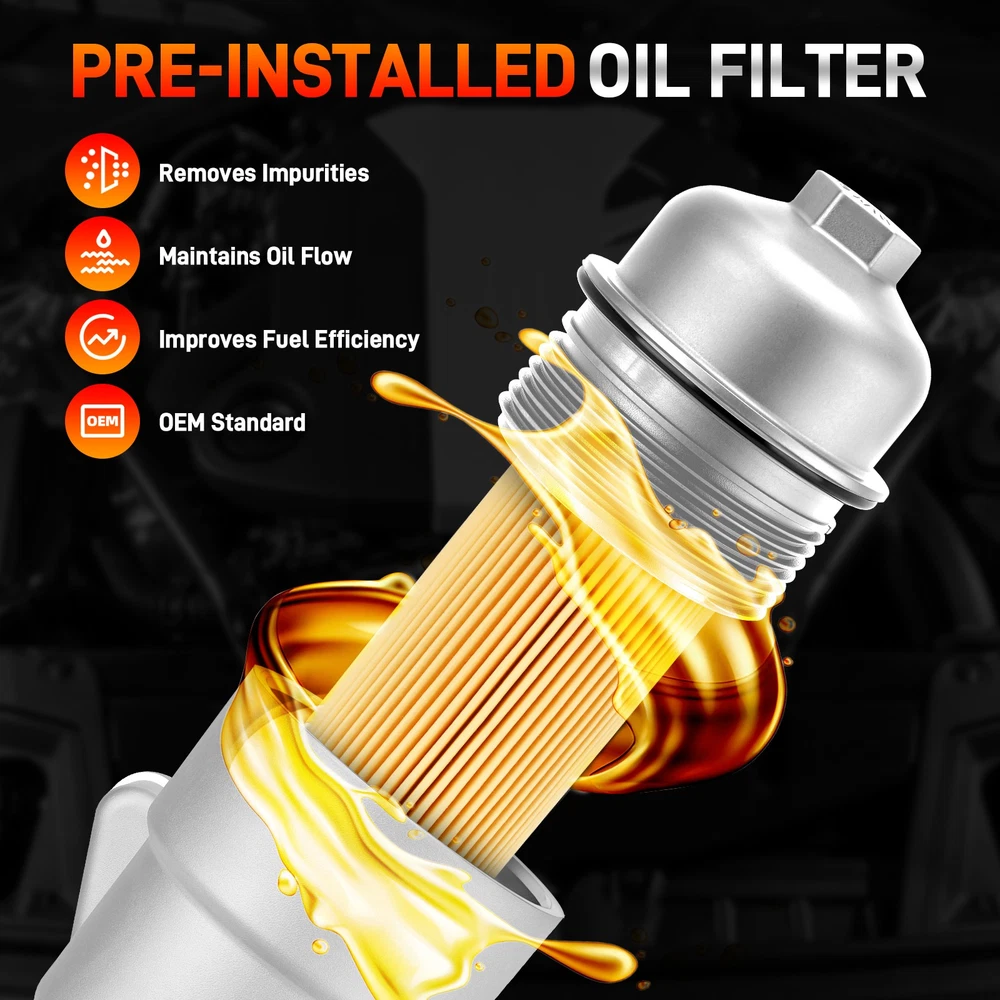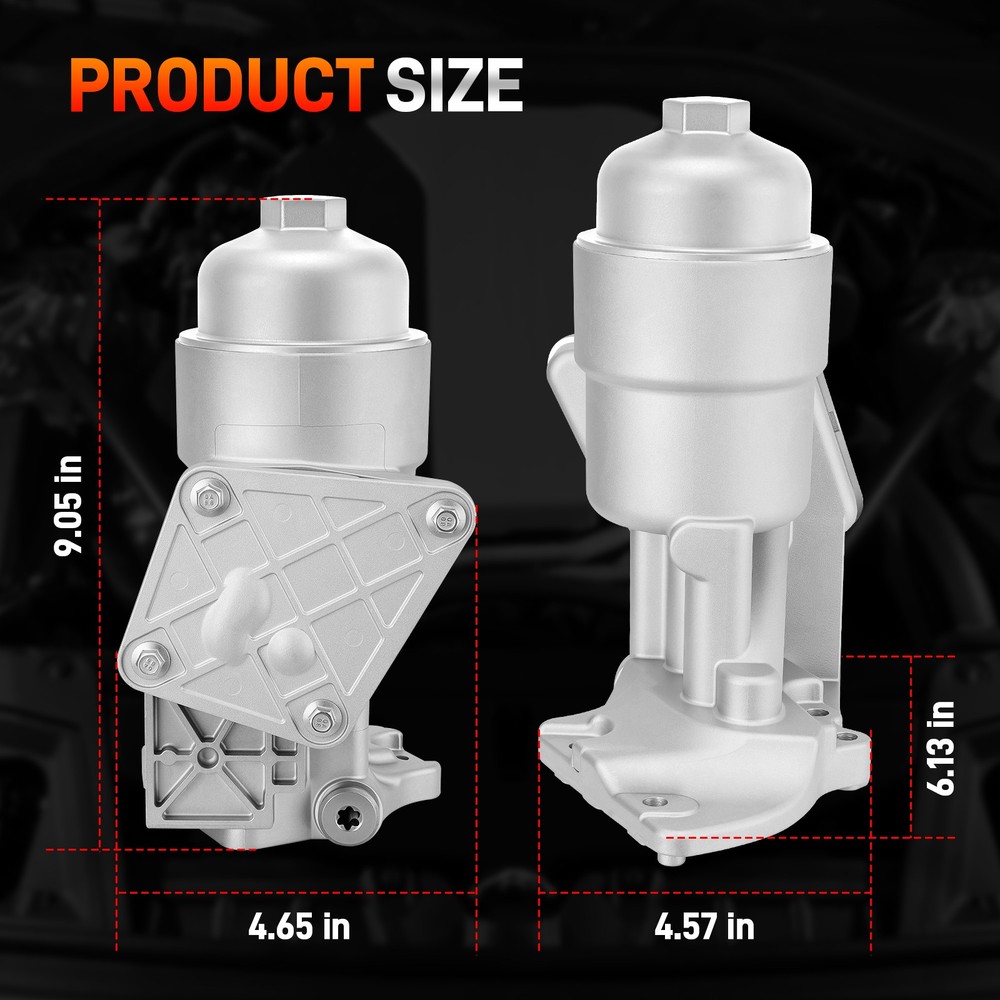 Full Aluminum Engine Oil Filter Housing For 12-18 Hyundai Santa Kia Cadenza 3.3L Product Description All-Metal Build: Durable aluminum housing and cap, resists heat and cracking Fitment: Compatible with HYUNDAI: Azera 2012–2017, Santa Fe 2013–2018, Santa Fe XL 2019 (3.3L V6) Compatible with KIA: Cadenza 2014–2016, Sedona 2015–2018, Sorento 2014–2018 (3.3L V6), Sorento 2012–2013 (3.5L V6) Part Number: Replacement for 26300-3CAB0, 26300-3CAB1 Efficient Cooling: Full aluminum boosts heat dissipation and oil flow Drop-In Replacement: Pre-installed filter and gaskets, no mods required Package included: 1 x Full Aluminum Engine Oil Filter Housing Note: 1.We provide clear pictures, measurements where possible. Please check as much as possible to make sure the item is the one that you need. 2.Please allow 1-10mm deviation due to manual measurement. 3.Due to light and screen difference, the item's color may be slightly different from the pictures. 4.make sure that the size and shape of the product matches your car. 5.No installation guides are included, we highly recommend to seek professional installation. Any damage during installation will not be refunded.