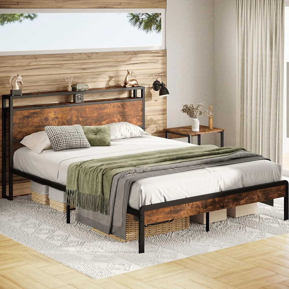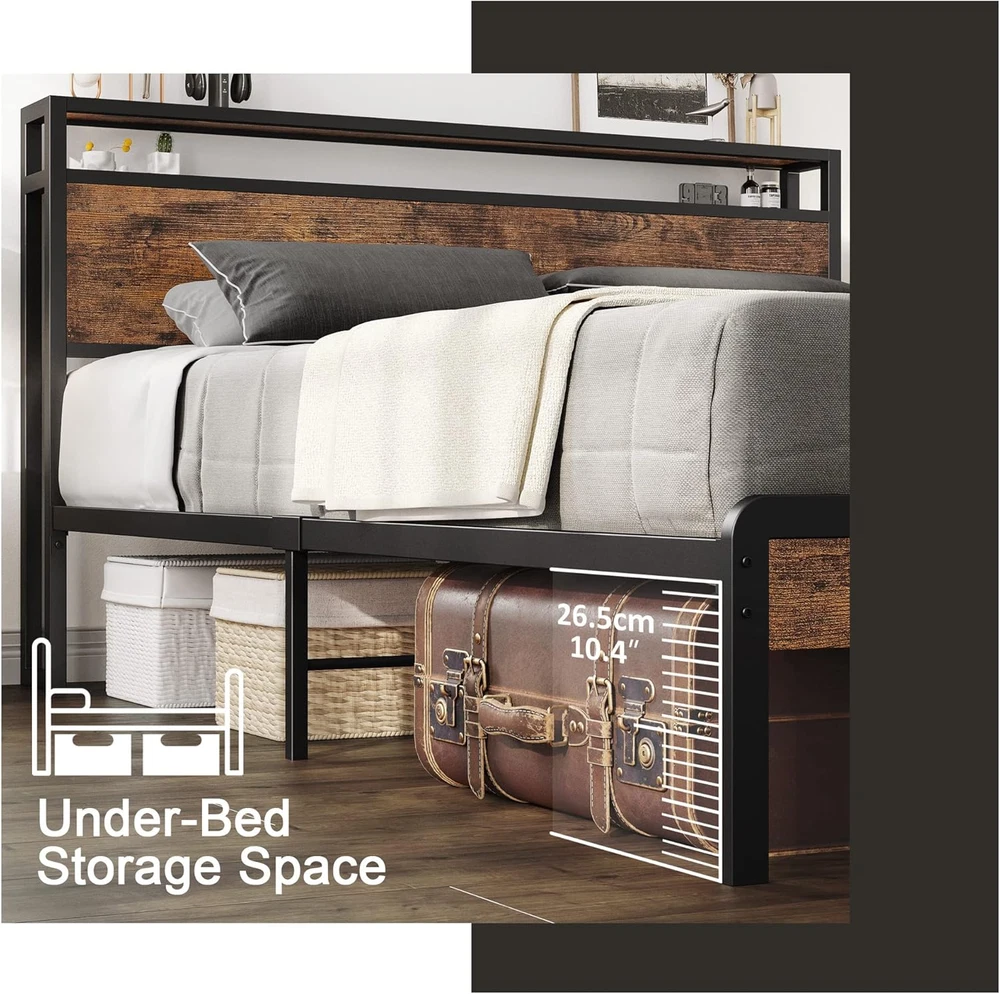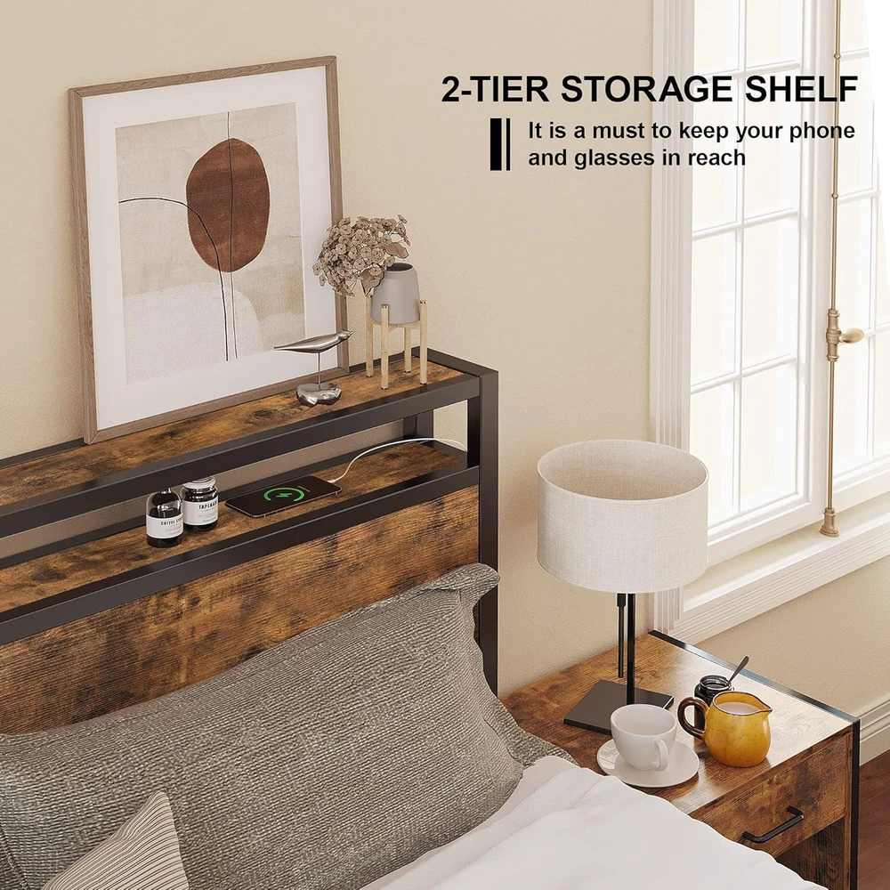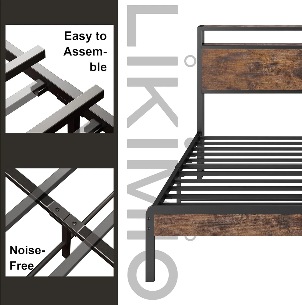 Store New Arrivals Add to Favorite View Feedback Contact Full Bed Frame, Platform Bed Frame Full with 2-Tier Storage Headboard and Strong Support Legs, More Sturdy, Noise-Free, No Box Spring Needed, Vintage Brown Description Item model number HK-FBF-13 Finish Type Laminated Assembly Required Yes Color Vintage Brown Material Engineered Wood, Metal Style with 2-Tier Storage Headboard Product Dimensions 81.5"L x 53.9"W x 39"H Furniture Finish Black Country of Origin China Maximum Weight Recommendation 250 Pounds Item Weight 62.7 Pounds Compatible With Mattress Size Full Item Weight 62.7 pounds Ground To Item Distance 10.4 Inches Included Components full headboard and frame Size Full Special Feature No Box Spring Needed Extra Space on Headboard: Comfortable to sleep and has that extra space on the headboard, where you place a lot of items. it is a must to keep your phone and glasses in reach Sturdy Construction: Heavy Strong metal support frames and five middle support legs (two more than other bed frames), providing optimum support for all of the types of mattresses without the use of a box spring Save Space and Time: 10.4 " under-bed clearance provides extra storage space. Each part of the queen platform bed is clearly labeled and numbered on each and you just need to match those numbers in order to assemble Industrial Style: P2 high-duty MDF board and black metal. Has kind of a mild industrial look to it without being overly trendy. Very suitable for your bedroom.full size bed Dimensions : L * W * H: 81.5 * 53.9 * 39 " Product Description LIKIMIO Full Bed Frame with Two-Tier Storage Headboard, More Convenient LIKIMIO Full Platform Bed Frame with Strong Supports, Safe Arc Corner Design and More Sturdy Color Vintage Brown Material Metal Slat Support + MDF Headboard Dimension 81.5 " * 53.9 " * 39 " Package Flat Pack Need Assembly Weight Capacity 1100 lbs Headboard shelf 2 Two-Tier headboard shelf Noise-Free Easy to Assemble 10.4 " Underbed Storage Space ABOUT US We offer the best prices around on high quality products. Our E-store includes media such as books, movies, music and games while offering electronics, toys, sporting apparel, clothing, tools, general home, garden items and more. SHIPPING We are always working hard to ensure your package arrives as soon as possible. Please understand that some factors like weather, high postal traffic, and the performance of shipping companies are outside of our control. We offer free shipping to the lower 48 states and ship within 2 business days of payment, usually sooner. We do not accept P.O. Boxes. Please provide a physical address. For shipping outside of the continental USA, we only use eBay's Global Shipping Program.The item is shipped to KY and then sent to the rest of the world. International customers are responsible for all duties and taxes. Continue to check out in order to calculate costs for shipping the item to your country. Messages regarding eBay's Global Shipping Program MUST be directed at eBay EXCLUSIVELY. RETURNS We offer a 30-Day Return Policy on items which you are not completely satisfied with. You have the option for a full-refund or an exchange of the item. No returns are available on items shipped outside of the USA. PAYMENT We accept PayPal. CONTACT US This page content is yet to come Please ad us to your favorite seller and visit again later Thank You CUSTOMER SATISFACTION We try our very best to make sure every customer is completely satisfied. If there's a problem, message us! We're happy to help.