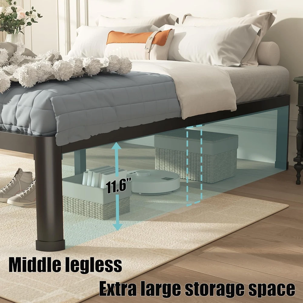 Store New Arrivals Add to Favorite View Feedback Contact Full Bed Frame with round Corner Edge Legs, 14 Inch Heavy Duty Support 3500 Lbs Metal Platform Bed Frame Full Size, No Box Spring Needed/Noise Free/Non-Slip/Steel Slat Support Description Included Components Slat Style 14in Has Headboard No Assembly Required Yes Color Black Finish Type Matte Product Dimensions 74.5"L x 53.4"W x 14"H Furniture Finish Alloy Steel Material Type Alloy Steel Item Dimensions L x W x H 74.5"L x 53.4"W x 14"H Item Weight 42.9 Pounds Weight Supported 3500 Pounds Style Name 14in Maximum Weight Recommendation 3500 Pounds Item Weight 42.9 Pounds Ground To Item Distance 14 Inches Special Feature function(f) {var _np=(window.P._namespace("DetailPageProductOverviewTemplatesJava"));if(_np.guardFatal){_np.guardFatal(f)(_np);}else{f(_np);}}(function(P) { P.when('A').execute(function(A){ A.on('a:truncate:po-attribute-truncate-2:updated', function(data) { var isTruncated = !data.truncateInstance.getIfTextFits(); var seeMoreElement = document.getElementById('po-attribute-see-more-id-2'); if(seeMoreElement) { seeMoreElement.style.display = isTruncated ? '' : 'none'; } }) });})); Rounded Corners,Easy Assembly,Heavy Duty Metal,Steel Slat Support,No Box Spring Needed,Squeak Resistant See more Compatible With Mattress Size 75"Lx54"W Material Alloy Steel Style 14in Size Full Heavy Duty Bed Frame:The full bed frame is made of alloy steel with reinforced structure.It won't shake or creak when you lie down to rest on it.The maximum weight-bearing capacity of the bed frame is up to 3500 lbs Round Corner Design:The elaborate full bed frame is designed with rounded cylindrical corners,softening the aesthetic experience and highlighting the novel design concept to avoid injuries to family members'toes No Box Spring Needed:Premium metal full size bed frame with strong and durable steel slats will support and extend the life of your latex,memory foam or innerspring mattress without the need for a box spring Non-slip Design:The metal slat comes with four strips of tape to effectively reduce mattress slippage;the bottom of the bed foot comes with a layer of plastic plugs to prevent the bed frame from sliding Easy Assembly:The assembly of the full bed frame is very simple,all the assembly tools and instructions are packaged with the full bed frame,two people in accordance with the instructions for cooperation can be completed within 15 minutes of installation,very convenient Product Description Metal Platform Bed Frame with Round Corner Legs HEAVY DUTY BED FRAME-The platform bed frame is made of heavy duty steel,strong enough to withstand 3500 pounds. STORAGE SPACE-14/18 inches high full metal bed frame provides giant under bed storage,this metal bed frame allows you to maximize the space in your bedroom. SAFETY DESIGN-The bed frame designed with rounded corners to prevent injuries caused by toe bumps. The video showcases the product in use. The video guides you through product setup. The video compares multiple products. The video shows the product being unpacked. The video showcases the product in use. The video guides you through product setup. The video compares multiple products. The video shows the product being unpacked. Shareing from Customers Easy to read instructions. Two people in accordance with the instructions for cooperation can be completed within 15 minutes. Available styles 14 Inch Metal Bed Frame 14-inch high metal bed frame with 11.6-inch high storage space under the bed.Make your room neater. 18 Inch Metal Bed Frame 18 inches high platform bed frame provides 15.6 inches of under bed storage,allows you to maximize the space in your bedroom. Steel Slat Support Heavy Duty Bed Frame Strong and durable metal bed frame will support and extend the life of your latex. Strong and Supportive Round Corner Bed Frame Rounded corners design platform bed, safe and novel to avoid your toe injury. Scratch Resistant Thickened Rubber Mat Rubber feet keep the bed frame from shifting and protect the floor from scratches, keeping it quiet. Quick and easy Easy to Install U-shape groove fixed slats,not easy to slide 1 Round Corner Bed Frame 2 Round Corner Bed Frame 3 Thickened Rubber Mat 4 Easy to Install 14 inch bed frame Compare bed frames 14 Inch Height 18 Inch Metal Material Metal Easy Assembly Features Easy Assembly Box Spring Noise-free 14 Inch Height 14 Inch Metal Material Metal Easy Assembly Features Easy Assembly Box Spring Noise-free 14 Inch Height 14 Inch Metal Material Metal Easy Assembly Features Easy Assembly Box Spring Noise-free 18 inch bed frame heavy duty bed frame platform bed frame Please Check The Size Before Buying ABOUT US We offer the best prices around on high quality products. Our E-store includes media such as books, movies, music and games while offering electronics, toys, sporting apparel, clothing, tools, general home, garden items and more. SHIPPING We are always working hard to ensure your package arrives as soon as possible. Please understand that some factors like weather, high postal traffic, and the performance of shipping companies are outside of our control. We offer free shipping to the lower 48 states and ship within 2 business days of payment, usually sooner. We do not accept P.O. Boxes. Please provide a physical address. For shipping outside of the continental USA, we only use eBay's Global Shipping Program.The item is shipped to KY and then sent to the rest of the world. International customers are responsible for all duties and taxes. Continue to check out in order to calculate costs for shipping the item to your country. Messages regarding eBay's Global Shipping Program MUST be directed at eBay EXCLUSIVELY. RETURNS We offer a 30-Day Return Policy on items which you are not completely satisfied with. You have the option for a full-refund or an exchange of the item. No returns are available on items shipped outside of the USA. PAYMENT We accept PayPal. CONTACT US This page content is yet to come P