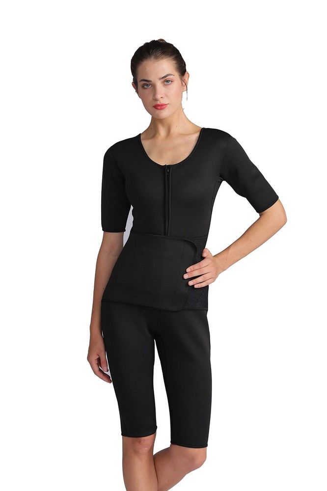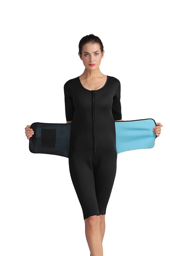 This Full Body Sauna Gym Sport Suit has sauna-like qualities, which stimulate better perspiration and help you lose inches in no time. The Full Body Sauna Gym Sport Suit has two main effects: Causes more perspiration and sweat Compresses and molds certain parts of your body More about the Full Body Sauna Gym Sport Suit: Made from NEOPRENE, which was used by divers to preserve body heat under the water. Causes a higher perspiration level making it easier to eliminate toxins and excess water. Very comfortable. Can be used everyday at home, work, or the gym. Moves with you through any type of exercise, whether it be MMA, boxing, aerobics, calisthenics, etc. Sweat more than usual Increase your metabolism Burn more calories Increase your mental and physical endurance. Detoxify your immune system. Increase flexibility, decreasing the likelihood of injury. Hot Sweat Sauna Suit Interior: Neoprene. Zipper front closure + adjustable waistband with velcro closure. Weight Loss shaper burns fat and accelerating your quick weight loss,wear under clothes provides your abdominal compression helps flaten your tummy ,sleeves and pants reduce excess weight on legs and arms. Hot sweating suit body shaper heating up your belly and making you sweat 3 times more, it provides enought compression and support, helps on musule recovery and prevent injuries remove toxins and slimming your waistline. The thermal layer will keep your body warm in cold days while still keeps your body dry and comfortable. EFFECTIVE CORSETS SHAPEWEAR:the waist shaper help smooth your after pregnancy or c-section tummy flabby and love handles,helping you look slimmer.It also helps postpartum recovery all process,reduce swelling,tighten skin,control tummy,support back,relief waist pain,ease transition of uterus and shrink it down to normal size,make your body get back to its original shape.
