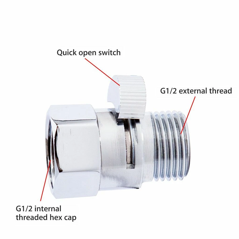 Product Description Specifications: Material: Brass Size: G1/2" Features: 1. Made from durable material, it can be used for a long time. 2. It is installed between the shower arm and shower head. 3. It is easy and quick to control or shut off the flow from the shower head when you're showering. 4. One-piece body and well constructed by solid brass, it is not easy to rust. 5. Easy to install and use, bring more convenience to your life. Kindly Notes: *Due to the lighting and screen settings, the real color may slightly different from the pictures. *Please allow slight size differences due to different manual measurement. *Thank you for your kind understanding. Package Includes: 1 x Shower Head Valve (Others are NOT included) Payment Shipping Returns Contact Us PayPal is easy and safe, and we accept PayPal payment. Please do not hesitate to contact us if you have any questions of payment procedures. Sales Tax: California residents, please add 8.75% for sales tax. Ship To Services Handling time Insurance Tracking Number USA Standard Shipping 1-6 Not include With CANADA USPS First Class Mail \International 5-10 Not include With Items dispatched to buyer's PayPal confirmed address from Monday to Friday (weekend & Holiday excluded) after payment has been received. Please check your shipping address carefully before checkout. If you want to change the address, pls kindly contact us through ebay message within three hours after payment. Otherwise, any change information may be disregarded once dispatched. Postage includes packaging material, shipping label, handling fee and so on. Do not provide local pick up service. Returns will be accepted within 30 days after delivery. However, if the item is damaged upon arrival, buyers must contact us within 3 days after delivery for any refund or replacement. Returns will not be accepted if buyers caused any damages to the item. Refunds are given as Exchange or Money Back. 1.Customer Service is available from Sunday to Friday(Saturday & Holiday excluded). 2.Pls kindly contact us by Ebay message and all replies will be answered soon. Please keep in mind it is not possible that we would ignore your emails and not respond designedly. Payment PayPal is easy and safe, and we accept PayPal payment. Please do not hesitate to contact us if you have any questions of payment procedures. Sales Tax: California residents, please add 8.75% for sales tax. Shipping Ship To Services Handling time Insurance Tracking Number USA Standard Shipping 1-6 Not include With CANADA USPS First Class Mail \International 5-10 Not include With Items dispatched to buyer's PayPal confirmed address from Monday to Friday (weekend & Holiday excluded) after payment has been received. Please check your shipping address carefully before checkout. If you want to change the address, pls kindly contact us through ebay message within three hours after payment. Otherwise, any change information may be disregarded once dispatched. Postage includes packaging material, shipping label, handling fee and so on. Do not provide local pick up service. Returns Returns will be accepted within 30 days after delivery. However, if the item is damaged upon arrival, buyers must contact us within 3 days after delivery for any refund or replacement. Returns will not be accepted if buyers caused any damages to the item. Refunds are given as Exchange or Money Back. Contact Us 1.Customer Service is available from Sunday to Friday(Saturday & Holiday excluded). 2.Pls kindly contact us by Ebay message and all replies will be answered soon. Please keep in mind it is not possible that we would ignore your emails and not respond designedly. powered by On May-19-20 at 23:53:21 PDT, seller added the following information: