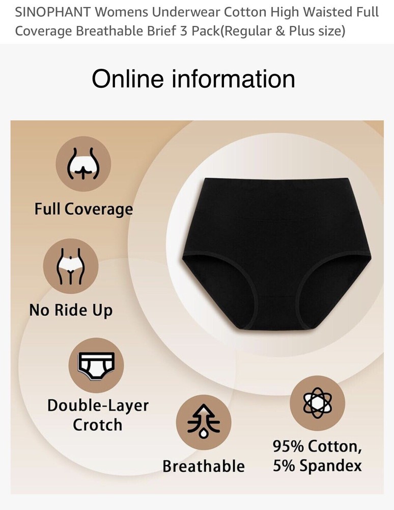 SINOPHANT Womens Underwear Cotton High Waisted Full Coverage Breathable Brief 3 Pack Blue 4XL Please ensure you review photos as they are an important part of the description Visit our store! • Returns will not accepted within 30 days after delivery. However, if the item is damaged upon arrival, buyers must contact us within 3 days of delivery for any refund or replacement • Item must be in original packaging and unused. • If there is an issue please contact us before leaving negative feedback We Thank You in Advance for Your patronage and we hope to have you back as a long term repeat customer!!