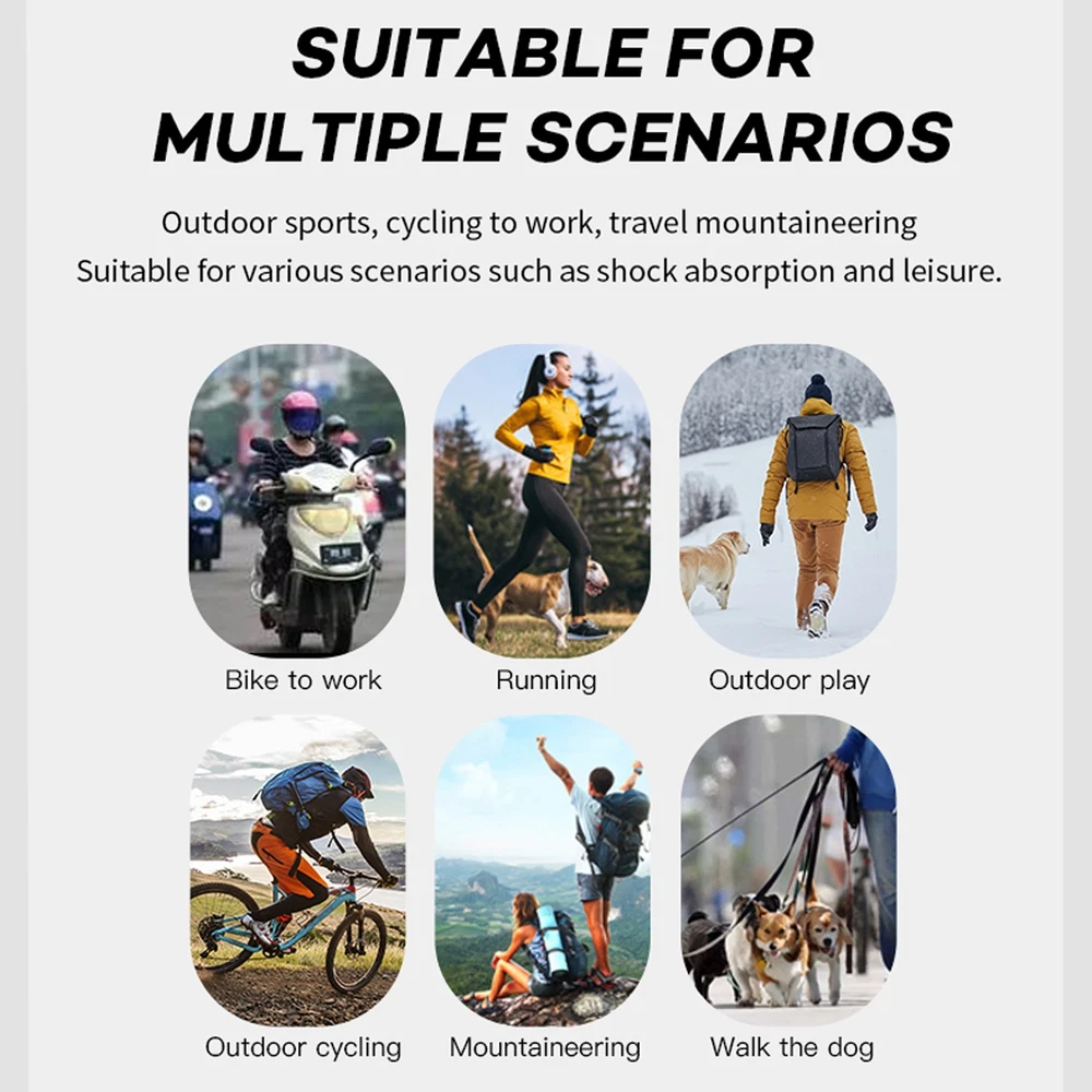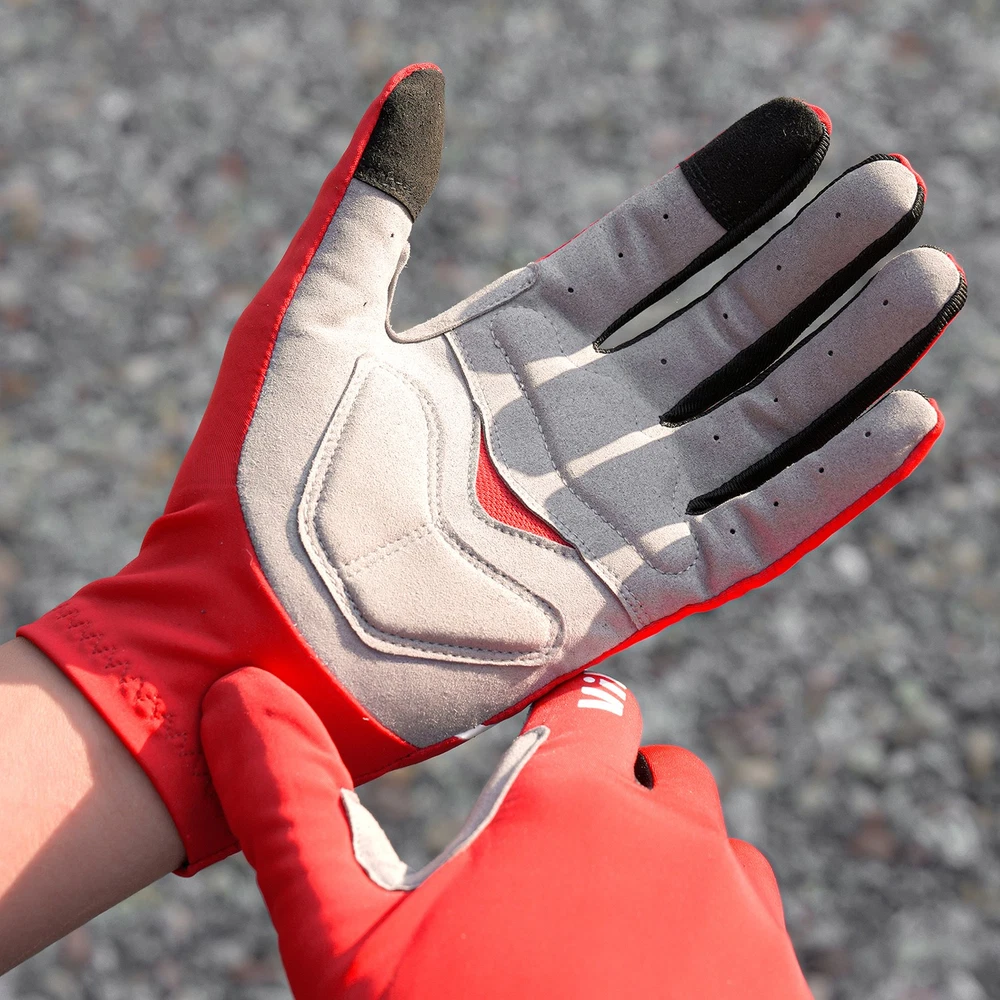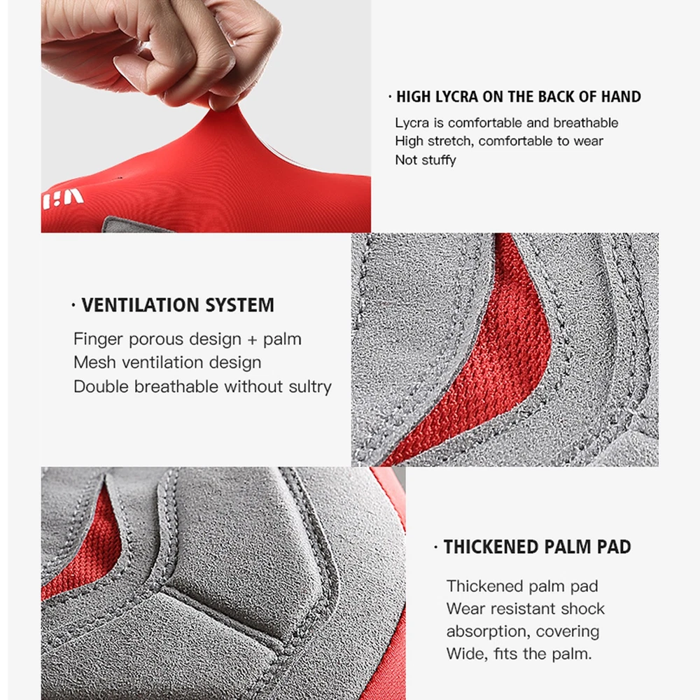 Product Description Features: 1. Glove with Durability: The tiger mouth features a special super fiber patch that reinforces the most wear-prone area, ensuring long-lasting durability for cycling gloves. Coupled with an SBR cushioning pad, it effectively alleviates thumb muscle soreness from prolonged riding, providing you with a comfortable riding experience. 2. Glove with Exceptional Breathability: Constructed with highly elastic Lycra fabric, the gloves offer both comfort and breathability, banishing any feelings of stuffiness and allowing your hands to breathe freely. The palm's mesh fabric is densely perforated, accelerating sweat evaporation, while the finger vents further enhance ventilation, keeping your hands dry at all times. 3. Glove with Shock-Absorbing Palm Pad: The palm incorporates premium super fiber material, significantly boosting friction for stable control during riding. The thick palm pad effectively cushions impacts from uneven road surfaces, enabling you to tackle various terrain with ease and enjoy a smoother ride. 4. Glove with User-Friendly Wear Design: A clever pull tab at the wrist allows for effortless glove donning, while a unique loop between the fingers facilitates quick removal, offering convenient adjustments on the go. 5. Glove for Multiple Riding Scenarios: Incorporating multiple protective designs, these gloves are ideal for a wide range of riding scenarios, including urban commuting, mountain biking, and long-distance traveling. Wherever your ride takes you, these gloves provide comprehensive comfort and safety, allowing you to fully enjoy the thrill of cycling. Specification: Material: Polyester,Microfiber Color: Black/Red/Blue/White Weight: 45g Gender: Universal Glove Type: Cycling Size: M、L、XL Please refer to the size chart. Package Includes: 1 Pair of Full Finger Cycling Glo ves