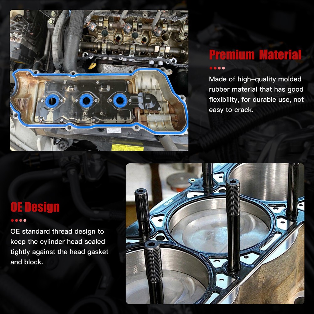 Compatibility should be checked and confirmed before placing order! Steps of confirming the compatibilities: Manage " My Garage ", and chose the right one when placing order; Or chose the " Year / Make / Model / Trim / Engine " of your vehicle on the compatible chart; Or Contact us if you have any question in confirming the compatibility, to make sure you will get the right and compatible item. Applications 2009-2016 For Buick Enclave 3.6L 3564CC 217CID V6 DOHC 2009-2016 For Chevrolet Traverse 3.6L 3564CC 217CID V6 DOHC 2009-2016 For GMC Acadia 3.6L 3564CC 217CID V6 DOHC 2009-2010 For Saturn Outlook 3.6L 3564CC 217CID V6 DOHC Package Included Multiple Layers Steel (MLS) Head Gasket Valve Cover Gasket Valve Stem Seals Intake Manifold Gasket Exhaust Manifold Gasket Front Camshaft Seal O-rings Other Small Gaskets Lower Gasket Set Head Bolts (As Picture Shows) ? Specifications Direct replacement - this Head Gasket Set are designed to match the original gaskets required to reseal and restore proper function on specified vehicles. Restores functionality - this Head Gasket Set are made to fit and fully restore part functionality after the original gasket fails. Durable construction - this Head Gasket Set are made from quality materials to ensure reliable performance and long service life Trustworthy quality - These Head Gasket Set are designed for the professional installer. It does not come with any installation instructions. If you do not have a service manual, please consult a professional mechanic prior to installing this kit. Purpose of Head Gasket Correct operation of the engine requires that each of these circuits do not leak or lose pressure at the junction of the engine block and the cylinder head. The head gasket is the seal that prevents these leaks and pressure losses. A leak in the Head Gasket - often called a "blown head gasket" Head gasket leaks are classified as either external or internal. External Leaks:oil or coolant on the outside of the engine (typically underneath) are visible Internal Leaks: when the fluids enter another circuit and may result in changes to the coolant or oil You will get what you see in the picture showed. About US: We are committed to making the best auto-parts products and providing you with better services. So if you have any quesiton or problem, please fell free to contact us about that. Payment: All of these methods which are acceptalbe by eBay. Shipping: All item will be packed with well condition in box or envelope, we make sure the item is in good protection, also please check all the item when you get the package. Product will be shipped within 2 business days after full payment is received and verified. All domestic orders will be shipped via USPS, UPS or FedEx from our US warehouse and usually arrives to your door in about 2-7 business days. Returns & Refund: 30-day free return will be provided. -Please note that the situations below will not be incounted: -Ordered by mistake. -Don't like it. -Duplicated orders. -Damaged product during installation. Contact Us: Any quesiton or problem, do contact us please. We are always online to answer. End Save for Web Slices