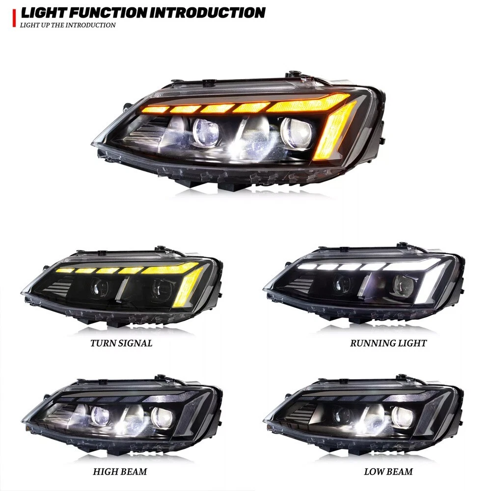Sunny-Light Lexus Style LED Tail Lights Smoked for Toyota Camry Sedan 2018-22 24 Brake Light BUY NOW Pair LED Front Fog Light for 2020-2024 Land Rover Defender 90 110 130 Assembly BUY NOW LED Tail Lights & Tailgate Light for Toyota Corolla E210 2020-2024 Assembly BUY NOW RGB LED Headlights for 11th Gen Honda Civic 2022-2024 RGB DRL Headlight Assembly BUY NOW LED Tail Light Assembly Turn Signal Light For Dodge Ram1500 2500 3500 2013-2018 BUY NOW LED Grille Light For 2020-2024 Land Rover Defender 90 110 130 DRL Accessories BUY NOW RGB LED Tail Lights Lamp Assembly Fits Toyota Camry 2018-2024 XSE XLE SE LE TRD BUY NOW Smoke Tail Light Assembly 2018-2022 For Toyota Camry LE SE XLE XSE TRD Rear Lamp BUY NOW LED Projector Headlights For Toyota 4-Runner 2014-2023 w/ Dynamic DRL&Sequential BUY NOW Smoked LED Tail Lights Kit Fits 2018-2023 Toyota Camry Sequential Signal Lamps BUY NOW RGB LED Headlights For Corvette C6 2005-2013 Sequential Turn Signal Assembly BUY NOW LED Headlights For Toyota 4Runner 2014-2023 DRL Sequential Turn Signal Head Lamp BUY NOW LED Headlights For VW Jetta MK6 2011-2018 Start UP Animation Daul-Beams Lamps Fitment: For Jetta MK6 2011 2012-2018 Package Includes: 1 Pair (Driver Side + Passenger Side) Headlights Assembly Set (Including Some Installation Accessories) Professional Installation is Highly Recommended Specification : Brand :TT-ABC Product Condition: 100% Brand New Type: Led Headlights Assembly A few second of Start up Animation Sequential Turn Signal Full LED, No need to purchase additional light bulbs Functions: DRL +High Beam+Low Beam lights+Turn Signal Housing Color: Black Lens Color:Clear Operating Voltage: 12V-14V Material:High Quality ABS Plastic+PC+PMMA Waterproof Rate:IP68 Warranty:1 year Features: DOT-Certifed, Durable, Easy lnstalation, High Quality, OE-Certified, SAE-Cerified, Sealed Assembly, Waterproof, ISO-Certifed, Dustproof And Shurdy Note: 1.Using your factory supplied connector/harness will avoid cutting or modifying any wires.It is plug and play, easy to install still professional installation is recommended. Benefits of LED making you safer on the road for other road users to see. 2.If you have any problem, please contact me . About us Payment Shipping Returns Contact us Feedback My store specializes in selling various car modification and customization products, including headlights, high beams, low beams, fog lights, contour lights, turn signals, brake lights, reverse lights, and interior lighting. At the same time, we have our own production factory and cooperate with hundreds of component factories, committed to providing customers with high-quality products, the most favorable prices, and a professional after-sales customer service team. Our goal is to meet the needs of our customers and provide them with an excellent shopping experience. 1.We can accept payment method is PayPal, Google Pay, Visa, Master Card, Amex and Discover and other payment way. 2.Immediate payment needs to be processed for items with Add to Cart option so that any promotional discounts can be applied to your order immediately. 3.Please confirm if the address and postal code are correct before placing an order! Convenient and fast shipping. 1.The package is Shipping from the US Stock by USPS,FedEx or UPS . 2.Shipment will be made within 1 business day after payment, and delivery will take 1-5 business days (excluding packages with a unit price below $50) 3.Please offer us your telephone number and correct zip code,or your order will be delayed since the courier will need it for the delivery.(not ship to Alaska, Hawaii and Puerto Rico). 4.Shipping Fee is include packing & handling charges. 5.International Customers:Import duties, taxes, value added tax and Other charges are Not Includes in the item price or shipping charges. These charges are the buyer’s responsibility and vary by country/location.These charges are not to be confused for additional shipping charges. 6.Please check with your country’s customs office to determine what these additional costs will be prior to bidding/buying. These charges are normally collected by the delivering freight (shipping) company or when you pick the item up. These charges are not to be confused for additional shipping charges. There are some tips for you: 1. If There are any problems with the product, please contact with us before leaving neutral and negative reviews feedback ,give me a Chance to make it right 2. If you are in our exclusion countries. Please write to us for shipping .If When the goods arrive, please check them carefully 3. If you find that the goods have been damaged, please be sure to refuse to collect the goods and ask the courier to return the goods to us. If the goods are damaged, please do not collect. 4. If the item you have ordered is defective, contact us within the 30 day warranty period, we will replace the defective item for you with an item of equal functionality at first. 5. If buyer do not want neither replacement nor partial refund, but want returning,buyer should be responsible for all the returning ship charges. 6. To be eligible for a return, the item(s) must be in new, unused condition with all original tags and packaging intact. Please note that we cannot accept returns for items that have been used, damaged, or altered in any way. Our working hours are from 9:00am to 18:30 China time (Monday to Friday). Communication is the best way to solve problems. If you have any questions, please contact us or leave us a free message. We will reply immediately at our convenience. After-sale If it happens that the lights get moisture after you install them on your car, it would be normal for first time using. You just need to keep using for a period of days, the moisture will disappear. because there is inner air cycling in the lights as we design. As for headlights, you can also open the cover of low/high beam so that the moisture will out more quickly. If the moisture still exist, please feel free 