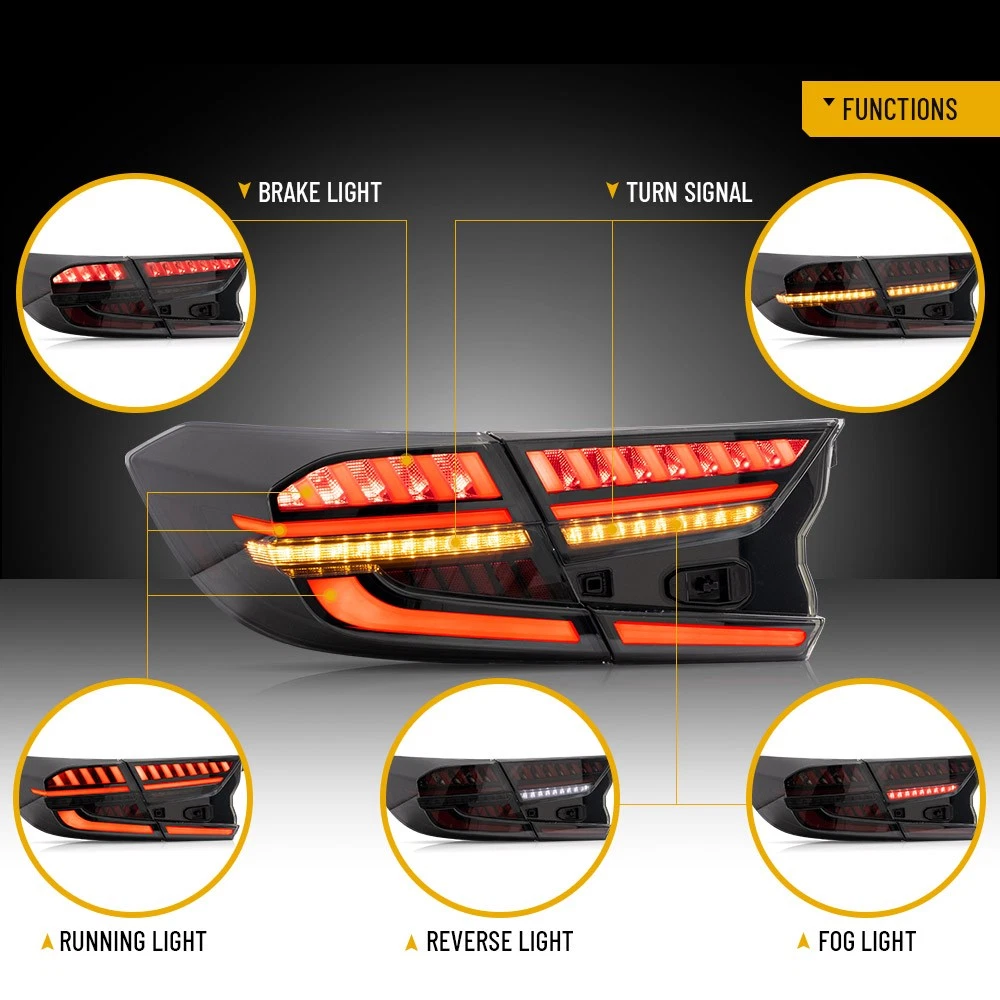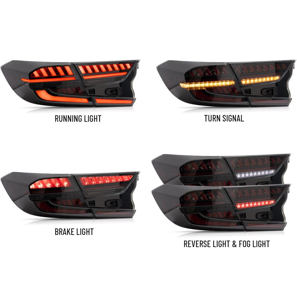 Full LED Tail Lights Fit For Honda Accord 2018-2022 Smoked Lens W/Sequential Part #: HO2802119, HO2802118, HO2803118, HO2804118, HO2805118 INCLUDES: (1) Front Taillight Assembly Right Passenger Side (1) Front Taillight Assembly Left Driver Side Fitment: For Honda Accord 2018-2022 10th Gen Aftermarket V4 Taillights / Rear lights. (1 Pair/4 Pieces) Contact Us SHIPPING & RETURN WARRANTY Contact Us 100% satisfaction goal. If you have had less than 100% positive experience, please contact us, so we can work out a resolution. Your questions will be replied within 24 hours except the weekend and holiday. We will serve for you with all sincerity! SHIPPING & RETURN Shipping Information - Policy The goods will shipped by the eBay address, so please leave the right address on eBay Please, choose some local sellers, If you cannot wait patiently in the shipping time we declared. Once you purchase, please DON’T leave negative or neutral feedback if you haven't received item in 30 days, because we have mentioned the shipping time repeatedly. If you not satisfied with the goods please contact us before leave the feedback, we will try ourbest to satisfy you. Standard Order Processing time: W e'll update you when proceeding with your order from (Monday - Friday). Payment cleared/received on Friday will be shipped on the next business days (Monday or Tuesday). We are not responsible for carrier transit time. This information is provided by the carrier and excludes weekends and holidays. Note that transit times may vary, particularly during peak periods or in climate weather conditions, and that delivery times frames will need to be extended for any processing time frames in excess of 2-3 business days. WARRANTY Standard Replacement Specifically excluded from this warranty are failures caused by misuse, negligence, modification, abuse, improper application, installation or operation, or by unauthorized service or use of unauthorized parts in connection with the product and inadequate maintenance, normal wear and tear or normal consumption of the product. One time replacement Customers are responsible for the return shipping cost on warranty claims. We will refund you the money you paid for the parts less shipping and handling charges Please Note: - We also have more models available, please contact us if you can't find your specific model. - When products are noted in the description as out of stock, these products will then be offered as pre-sale items, normally they will be posted within 20 days from the date of cleared payment. - Item sold in a pair (left and right), bulbs may or may not be provided. On Nov 14, 2025 at 01:13:32 PST, seller added the following information: