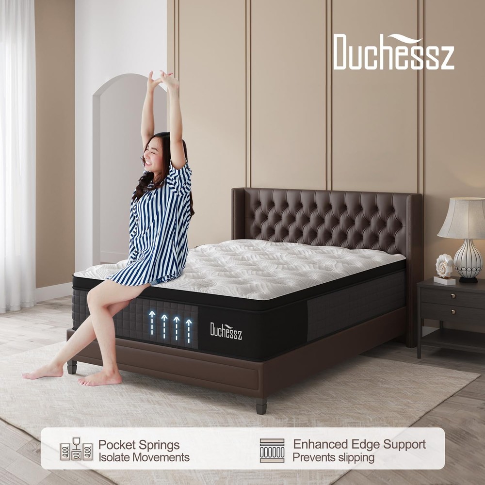 Experience the perfect blend of comfort and support with the Hybrid Mattress, featuring cooling gel memory foam and pocketed springs for a rejuvenating sleep.  Specifications: Mattress Top: Euro Top Mattress Feel: Medium (Firmness Level: 6.5/10) Height Options: 10/12/14 inch Mattress Construction: Hybrid (Comfort Foam, Memory Foam, Pocketed Coil) Cover Material: Polyester Coil Type: Pocketed Coil Weaving Method: Knitting  Features: Breathable Design: Luxurious knit fabric enhances air circulation for a cool sleeping surface. Pressure Relief: Combination of pocketed springs and memory foam promotes spinal alignment and alleviates discomfort. Edge Support: Reinforced springs provide stability and prevent rolling off the edges. Motion Isolation: Individual pocketed coils minimize motion transfer for undisturbed sleep. Temperature Regulation: 100% natural and cooling gel-infuséd memory foam maintain a comfortable temperature. Transform your sleep experience with the Hybrid Mattress, expertly crafted to provide the ultimate in comfort and support. With its luxurious Euro top and a unique combination of natural latex, cooling gel-infuséd memory foam and pocketed springs, this mattress ensures you wake up refreshed and ready to face the day. The breathable knit fabric cover enhances airflow, while the cooling gel-infuséd memory foam regulates body temperature, creating a cozy sleep environment. Enjoy quiet, undisturbed nights with minimized motion transfer and reinforced edge support. 【Supportive for Various Sleeping Positions】: This medium firm full mattress is designed to offer unparalleled support for individuals of all sizes with its unique combination of high-density memory foam and sturdy pocket springs. The hybrid mattress easily adjusts to different body shapes and sleeping styles, ensuring a comfortable night's sleep for everyone. 【Elevate Your Sleep Experience】: Upgrade your sleep sanctuary with our CertiPUR US and Oeko-Tex Standard 102 certified hybrid full mattress for unmatched safety and durability. All foam materials have undergone rigorous testing to ensure they are free of harmful substances and fiberglass, making it a secure choice for your home. 【Silent Sleep, Motion Isolated】: Enjoy a peaceful night's sleep without disturbances with our medium firm full hybrid mattress featuring individual pocket springs that minimize noise and motion transfer, making it perfect for couples sharing a bed. Rest assured that you will remain undisturbed throughout the night for a truly serene sleep experience. 【Advanced Edge Support for Maximum Comfort】: Engineered with premium high-density foam, the luxurious full mattress offers optimal medium firm support to the spring perimeter, enhancing edge stability. The reinforced edges with thicker springs ensure a durable and steady sleep surface, providing unparalleled comfort and support for a restful night's sleep. 【10-year Warranty Guarantee】: Rest easy knowing that your hybrid full mattress is backed by a 10-year warranty. Our dedication to quality ensures your mattress will provide restful sleep for years to come. For optimal results, we recommend allowing the mattress to fully expand for 48-72 hours after unboxing before use.