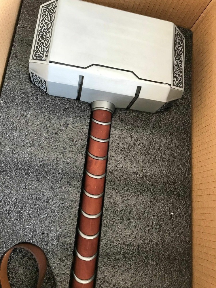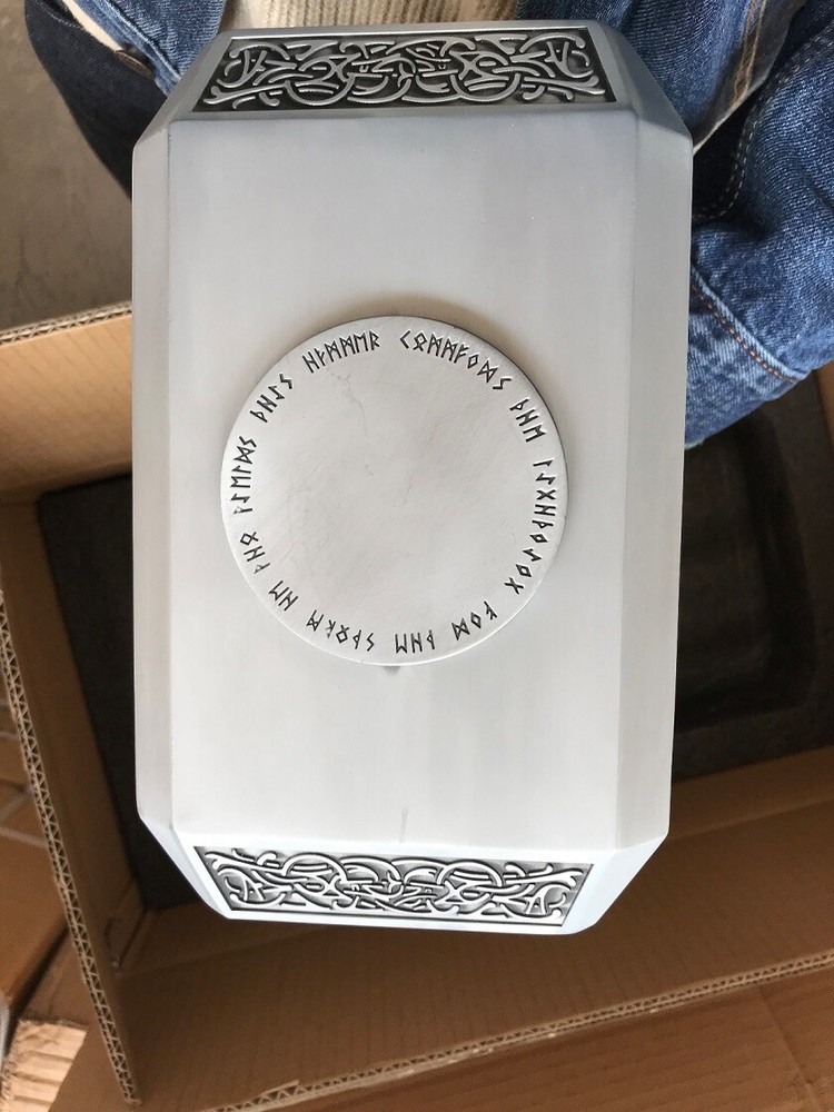 1:1 Scale Full Metal Thor Hammer Mjolnir 1/1 Replica Thor Custom Cosplay Hammer Collection Model Toy Note: The color of handle maybe light or dark brown due to different batch, which is shipped by random. Product Description: The item is made in china! NO WOODEN BOX, Only paper box Material: High Quality 100% Zinc-Alloy and Leather Belt Size: 43cmX22cmX30cm (17.3"X8.6"X11.8") Hammer Weight: about 3.5KG Thicken:1mm Total Weight about 5-6Kg Package:in Box Technology:CNC engraving Package Included: 1 pc Full Metal Thor Hammer