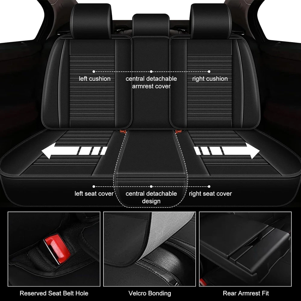 Notice All the pictures have been professionally corrected, but due to the different ambient light and different display device settings, there may be some deviations in the pictures and items you see, please understand! Feature ▼ Easy to clean: Wipe clean easily with just a damp towel, keeping your seat protects from stains, spills and damage. ▼ Easy to install: The package comes with an installation manual, please read it before you start the installation and you will be able to do it easily even if it is your first time. ▼ Safety: The front seats have airbag reserve ports on the side to ensure that the airbags can be popped out in case of emergency. The rear seat belt also completely exposed. ▼ Material: Premium faux leather is durable, breathable, comfortable and has good waterproof. The interior of the seat cover is filled with sponge, the appropriate thickness allows you to sit for a long time without getting tired. Specification Type: Car Seat Covers Color: Black Material: Faux leather Range of application: 5 sits cars, all seasons Fitment: Fit for For Chevrolet Trax 2015-2021 Package included 2* Front Seat Cover 1* Set of Rear Seat Cover 1* Bag of Accessories for installation