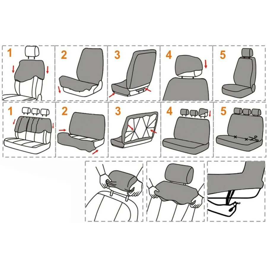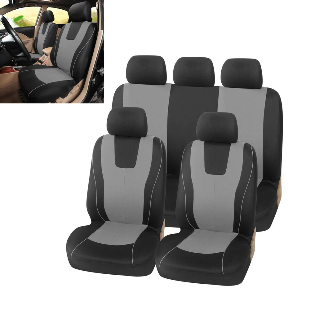 Product Description Gray Car Seat Cover Polyester Fabric Protect Seat Covers Universal Fit For 5-Seats Car Truck SUV Product Description: Item Name: Universal Car Seat Covers Compatible Vehicles: Fits all Standard Car Placement on Vehicle: Front and Rear Material: Polyester + mesh cloth, 3MM sponge double composite padding. Material is washable and breathable Color: Gray Contains: 2 x front seat covers 1 x rear bench cover 1 x rear back cover 5 x headrest covers 1 x Bag Hook Accessories PLEASE NOTE: This is a universal product. Whilst every attempt is made by the manufacturer to cater for all cars we cannot guarantee this will fit every vehicle. This seat cover requires your car’s headrest to be movable. Payment Returns Contact Us Shipping We accept payment by PayPal only ! Payment should be completed within 5 days after buyer places the order,or else an unpaid case will be opened in order to cancel the transaction. If you can not pay in time, please contact us. e-check from PayPal will only be processed once the payment clears. All of the items will be shipped to buyer's EBAY address,please confirm your address on Ebay before you buy.Your order will be usually shipped out the same or next business days once the payment is made and cleared. 30-day Warranty with Exchange for defective, malfunctioned, incorrect or parts-missing items. Please notify us and return the item with all parts and accessories packed and marked "FOR EXCHANGE" within 14 days of receipt. If defective, malfunctioned or parts-missing items are no longer available, a refund may be issued. All returning postage costs will be the responsibility of the buyers under all circumstances. If you encounter any problems about anything, please feel free to contact us and we will do our best to assist you solve the issue. If you are not satisfied in anyway, please feel free to let us know and give us a second chance to correct it before you decide to leave any neutral or negative feedback. Please contact us through eBay link if you have any questions. We will reply you within 24- 48 hours. Please check you spam mail if no response for 48 hours. All items will be checked before packing. All items are new and of high quality. Item will be shipped within 1 business days upon receipt of payment, excluding weekends and public holidays. If to USA,we will ship your order by USPS,it will take about 8-12 working days to you,and you can track it on line. If to other country,we will ship your order by China Post or Singapore Registered Air Mail,it will take about 14-21 working days to you,you aslo can track it on line. Delivery time is about 14-28 business days and it may take up to 8 weeks . Payment We accept payment by PayPal only ! Payment should be completed within 7 days after buyer places the order,or else an unpaid case will be opened in order to cancel the transaction. If you can not pay in time, please contact us. eCHECK from PayPal will only be processed once the payment clears. All of the items will be shipped to buyer's EBAY address,please confirm your address on Ebay before you buy.Your order will be usually shipped out the same or next business days once the payment is made and cleared. Returns 30-day Warranty with Exchange for defective, malfunctioned, incorrect or parts-missing items. Please notify us and return the item with all parts and accessories packed and marked "FOR EXCHANGE" within 14 days of receipt. If defective, malfunctioned or parts-missing items are no longer available, a refund may be issued. All returning postage costs will be the responsibility of the buyers under all circumstances. Contact Us If you encounter any problems about anything, please feel free to contact us and we will do our best to assist you solve the issue. If you are not satisfied in anyway, please feel free to let us know and give us a second chance to correct it before you decide to leave any neutral or negative feedback. Please contact us through eBay link if you have any questions. We will reply you within 24- 48 hours. Please check you spam mail if no response for 48 hours. Shipping All items will be checked before packing. All items are new and of high quality. Item will be shipped within 1 business days upon receipt of payment, excluding weekends and public holidays. If to USA,we will ship your order by USPS,it will take about 7-10 working days to you,and you can track it on line. If to other country,we will ship your order by China Post or Singapore Registered Air Mail,it will take about 14-21 working days to you,you aslo can track it on line. Delivery time is about 14-28 business days and it may take up to 8 weeks . Welcome to our Store ~