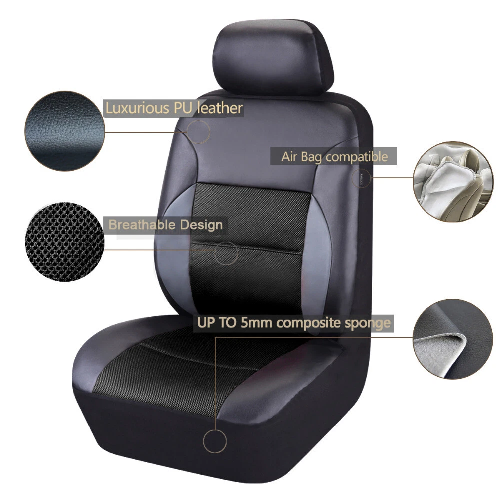 Add our listing to Watchlist Or Add to Cart , you will get more discount This seat covers fits most Detachable Headrest seats . Seat covers can extend the life of your vehicle and keep your seats looking brand new and clean. These seat covers fit most of the standard vehicles including sedan, SUV, truck, van and minivan. 1, Universal application fits almost all 5-seats Cars 2, Helps Protect a Nice Seat or Disguise an Old One 3, Airbag compatible 4, Easy to install Features: 100% Brand new and high quality! Easy Installation Durable and Long Lasting Comfortable in Four Season Color: Black Material: PU Leather Stitching Breathable Fabric Description: 1.The car seat cover is full set. 2.It is very easy to install the car seat cover, doesn't need to dismantle the seats, a person can complete it in 20 minutes. 3.The car seat cover doesn't affect the airbag, doesn't affect the child safty seat, doesn't affect the seat belts,too. 4.The car seat cover is universal,it is suitable for most of cars,If you are unsure if this cover is right for your vehicle, please contact us before buying. Package Include: 5 seat head covers: 30*27cm 2 front seat covers: 118*56cm 1 backrest: 135*76cm 1 rear seat cushion: 135*56cm Accessories: one pack of hooks