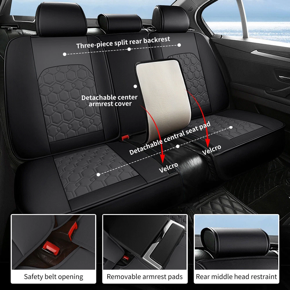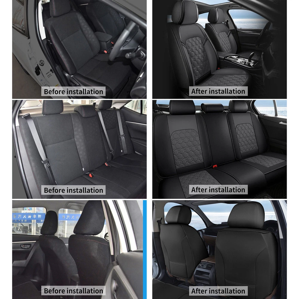▕★ ∨ ★▏Notice _ Please understand the car list NOT 100% correct! Most Seats will perfectly fit, but some Seats may not fit. Please refer to your vehicle model and check your seats carefully before placing the order. The item will be shipped according to your specific vehicle model, so please send us an email to inform us about the specific vehicle model and seat picture after placing the order. _ The picture is for reference only, due to the different ambient light and different display device settings, there may be some diference between the pictures with the items you see. Thanks for your understanding. 『Features』 Easy to install_The package comes with an installation manual of the car seat covers, please read it carefully before you start to install and you will be able to do it conveniently following the step of manual with magic sticker. Covenient to clean_ Wipe clean easily with just a wet towel, protect your car seat from stains, spills and damage. Safety_ The front seats have airbag reserve ports on the side to ensure that the airbags can be popped out in case of emergency. The rear seats safety belt also completely exposed. Material_ Premium faux leather is durable, wear resistant, breathable, non-slip, comfortable and has good waterproof. The interior of the seat cover is filled with sponge, the appropriate thickness allows you to sit for a long time without getting tired. There are 2 storage bags on the front seat covers that you can store small stuff. 『Specification』 Product Type_ Car Seat Cover Color_ Black+Grey Material_ Luxury Faux Leather Apllicable season_ All seasons Fitment_ Fit For Volkswagen Jetta 2008-2024 『Package Include』 ○ 2 Front Seat Covers ○1 Set of Rear Seat Covers ○ 5 Headrest Covers ○1 Bag of Accessories for Installation ○1 Intruduction Paper of Installation