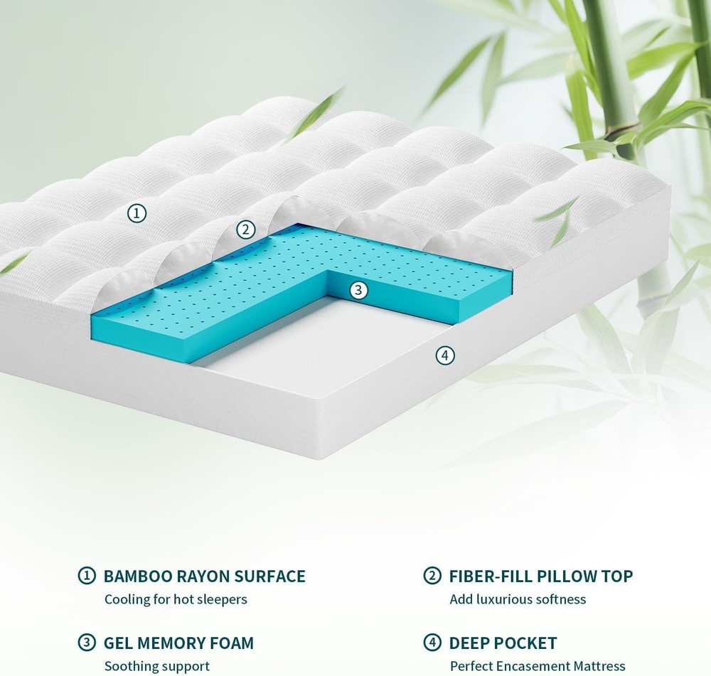 Full Size 3 Inch Dual Layer Memory Foam Mattress Topper with Pillow Top Comfort ‹ › ‹ › ‹ › ‹ › ‹ › ‹ › ‹ › ‹ › ‹ › Full Size 3 Inch Dual Layer Memory Foam Mattress Topper Experience unparalleled comfort with our luxurious Full Size 3 Inch Dual Layer Memory Foam Mattress Topper, designed to elevate your sleep experience to new heights. Features: Upgraded Dual Layer Design: A versatile combination of 3 inches of foam—2 inches of 30D Cooling Gel Memory Foam paired with 1 inch of Pillow Top Polyester Filler, providing the ultimate plush feel. Stress Relief & Curve Support: The innovative 30D Cooling Gel Memory Foam alleviates pressure points, helping to prevent neck, shoulder, and back pain while improving overall sleep quality. Breathable & Cooling: The anti-pilling terry surface offers cooling benefits and is designed with skin-friendly, moisture-wicking properties, making it ideal for hot sleepers. Fully Wrapped Skirt & Washable: The 16-inch deep pocket fits mattresses up to 21 inches, ensuring a secure fit that keeps the topper in place. It's also removable and machine washable for effortless upkeep. Your Sleep Revolution Starts Here Say goodbye to restless nights and embrace luxurious sleep with our Full Size 3 Inch Dual Layer Memory Foam Mattress Topper. Crafted for those who value both comfort and support, this topper is your ideal companion for achieving the restful slumber you deserve. Why Choose Our Mattress Topper? Investing in your sleep is investing in your health. Our mattress topper is engineered to cater to your body's needs while also being maintenance-friendly. With a 30-day return/replacement service, your satisfaction is our top priority. Let our customer support assist you for any inquiries. Transform your nights and energize your days—order your Full Size Dual Layer Memory Foam Mattress Topper today and rediscover the joy of sleeping well! Shipping Free & Fast Shipping - We offer free shipping to most of the USA with a normal delivery time of 3-7 days. However, due to the current situation, additional delivery time (up to 3 weeks) may be required for some items. Alternative Carriers - We may use alternative carriers (e.g. USPS, FedEx, UPS, etc.) to ensure your package arrives safely and on time. Due to the use of multiple carriers, we are unable to provide a tracking number automatically. Handling Time - Orders are processed and shipped within 1-2 business days of receiving cleared payment. Shipping Restrictions - Shipping to Alaska, Hawaii, Puerto Rico, Guam, and other US territories may incur shipping charges or delivery restrictions. Please contact us before ordering, or your order can be refunded/cancelled. State Restrictions - There may be restrictions based on your state of purchase. For example, certain items may not be shipped to California due to state regulations. Contact for Tracking Updates - If you require tracking updates or have any concerns about the delivery of your order, please feel free to contact us, and we will be happy to assist you. Return 30-Day Hassle-Free Returns - We want you to be completely satisfied with your purchase. If you are not, you can return the item within 30 days of receiving it for a full refund or exchange. Easy Return Process - To start a return, simply contact us and we will provide you with a prepaid return shipping label and detailed instructions. Restocking Fee - There are no restocking fees for returns. However, the buyer is responsible for return shipping costs if the return is not due to a seller's error. Refund Processing Time - Refunds will be processed within 5 business days of receiving the returned item in its condition. Payment We accept all major credit cards, PayPal, and Apple Pay for your convenience. Your payment information is secure and encrypted to ensure a safe and seamless transaction. Please complete your payment within 3 days of purchase to avoid any delays in shipping. Feedback Your feedback is extremely important to us. We strive to provide the best products and customer service possible. If you are satisfied with your purchase, please take a moment to leave us a positive review. If you have any concerns or issues with your order, please contact us before leaving negative feedback. We are committed to resolving any problems and ensuring your satisfaction. Contact Us If you have any questions or concerns, please feel free to out to our customer support team. You can contact us through the eBay messaging system. We are available Monday to Friday, 9:00 am to 5:00 pm EST, and we will do our best to respond to your inquiry within 24 hours. Buy it now and enjoy a pleasant shopping experience! Item Length: Memory Foam Mattress Topper Item Width: Memory Foam Mattress Topper Unit Quantity: 16.91 Material: Bamboo,Memory Foam,Polyester,Rayon Features: Cooling,Machine Washable,Stress Relief,Pressure Relief,Breathable Care Instructions: Machine Wash Room: Bedroom Size: Full Type: Mattress Topper Fill Material: Gel Foam Closure Type: Pull On Color: White Style: Modern Shape: Rectangular Thread Count: 200 or Less GSM (Grams per Square Meter): 150 to 300