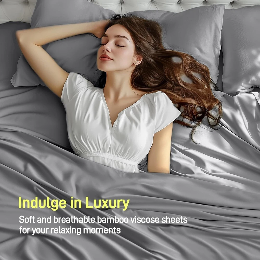 Bamboo Viscose Bedding Set Full Size Silky Soft Hypoallergenic Breathable ‹ › ‹ › ‹ › ‹ › ‹ › ‹ › ‹ › ‹ › ‹ › Bamboo Viscose Bedding Set - Full Size Indulge in the unparalleled comfort of our luxurious bamboo viscose bedding set, thoughtfully crafted for those who seek a tranquil and sophisticated sleep experience. Features: Exceptional Softness: Crafted with sateen-inspired HyperWeave Technology, this bedding set combines 55% bamboo viscose and 45% polyester for a remarkably soft feel that elevates your slumber. Silky Fabric: The shimmering silky fabric contributes to a refined aesthetic while enveloping you in luxurious comfort. Breathable and Moisture-Wicking: Our unique bamboo viscose blend adeptly absorbs moisture and wicks away sweat, ensuring a cool and refreshing sleep environment all night long. Deep Pocket Design: Designed with deep pockets to fit snugly on mattresses of various thicknesses, these sheets stay securely in place, providing peace of mind and uninterrupted rest. Effortless Care: Machine washable for effortless maintenance; to maintain their silky smoothness, we recommend using a laundry bag during washing. Benefits: Transform your bedroom into a sanctuary of comfort and sophistication. Enjoy a refreshing night’s sleep with breathable and moisture-wicking fabric. Say goodbye to slipping sheets thanks to a snug fit on various mattress sizes. Easy to care for, allowing you to focus more on your restful nights and less on maintenance. Why Choose Our Bamboo Viscose Bedding Set? Elevate your sleeping experience with our Bamboo Viscose Bedding Set – where silky softness meets superior breathability. This thoughtfully designed ensemble not only enhances your comfort but also exudes a glamour that enriches your bedroom decor. Make the indulgent choice today and embrace the serene sleep you deserve! Shipping Free & Fast Shipping - We offer free shipping to most of the USA with a normal delivery time of 3-7 days. However, due to the current situation, additional delivery time (up to 3 weeks) may be required for some items. Alternative Carriers - We may use alternative carriers (e.g. USPS, FedEx, UPS, etc.) to ensure your package arrives safely and on time. Due to the use of multiple carriers, we are unable to provide a tracking number automatically. Handling Time - Orders are processed and shipped within 1-2 business days of receiving cleared payment. Shipping Restrictions - Shipping to Alaska, Hawaii, Puerto Rico, Guam, and other US territories may incur shipping charges or delivery restrictions. Please contact us before ordering, or your order can be refunded/cancelled. State Restrictions - There may be restrictions based on your state of purchase. For example, certain items may not be shipped to California due to state regulations. Contact for Tracking Updates - If you require tracking updates or have any concerns about the delivery of your order, please feel free to contact us, and we will be happy to assist you. Return 30-Day Hassle-Free Returns - We want you to be completely satisfied with your purchase. If you are not, you can return the item within 30 days of receiving it for a full refund or exchange. Easy Return Process - To start a return, simply contact us and we will provide you with a prepaid return shipping label and detailed instructions. Restocking Fee - There are no restocking fees for returns. However, the buyer is responsible for return shipping costs if the return is not due to a seller's error. Refund Processing Time - Refunds will be processed within 5 business days of receiving the returned item in its condition. Payment We accept all major credit cards, PayPal, and Apple Pay for your convenience. Your payment information is secure and encrypted to ensure a safe and seamless transaction. Please complete your payment within 3 days of purchase to avoid any delays in shipping. Feedback Your feedback is extremely important to us. We strive to provide the best products and customer service possible. If you are satisfied with your purchase, please take a moment to leave us a positive review. If you have any concerns or issues with your order, please contact us before leaving negative feedback. We are committed to resolving any problems and ensuring your satisfaction. Contact Us If you have any questions or concerns, please feel free to out to our customer support team. You can contact us through the eBay messaging system. We are available Monday to Friday, 9:00 am to 5:00 pm EST, and we will do our best to respond to your inquiry within 24 hours. Buy it now and enjoy a pleasant shopping experience! Unit Quantity: 4 Material: Polyester,Viscose,Bamboo Viscose Features: Breathable,Cooling,Hypoallergenic,Machine Washable,Soft,Moisture-Wicking,Deep Pocket Care Instructions: Machine Wash Department: Adults Room: Bedroom Size: Full Type: Sheet Set Color: Gray Pattern: Solid Thread Count: Unknown Style: Luxury Shape: Rectangular GSM (Grams per Square Meter): Unknown Unit Type: Unit